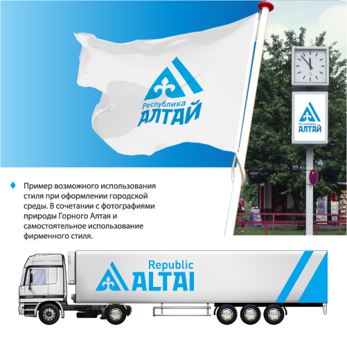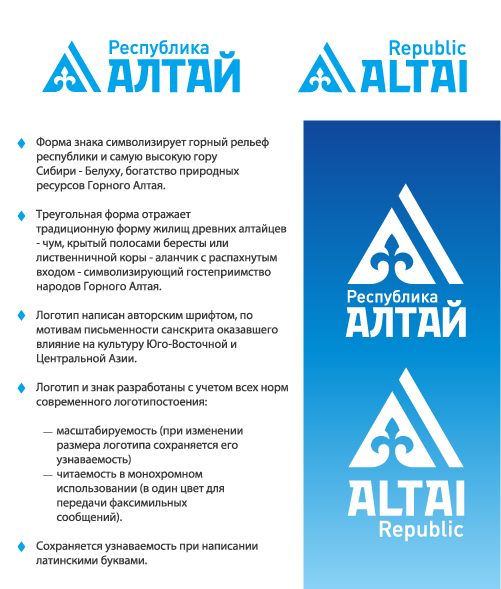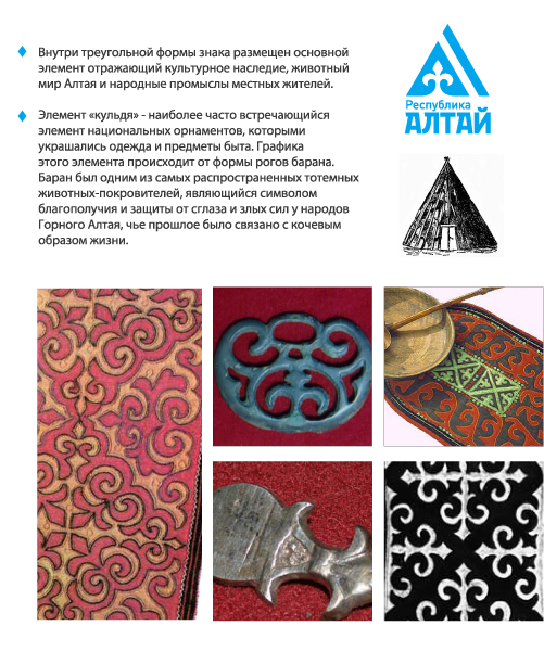 Алтай в одной каплеРабота Realpro для республиканского тендераВ рамках социального тендера, объявленного Министерством экономического развития и инвестиций Республики Алтай, компания Realpro разработала вариант торгового знака и систему идентификации. От дизайнеров требовалось придумать единый узнаваемый символ республики для продвижения местных товаров и повышения престижа Алтая, как перспективного региона по производству экологически чистой продукции. Основным элементом знака от Realpro стал традиционный тюркский орнамент крестообразной формы, а цветовое решение унаследовано из официального флага Республики Алтай: