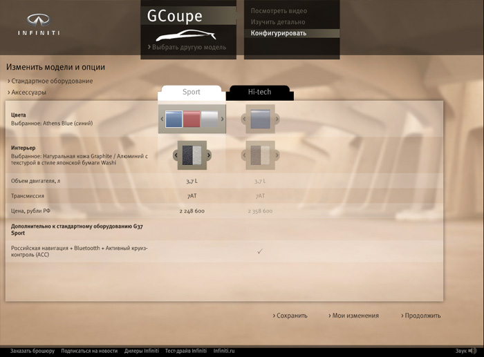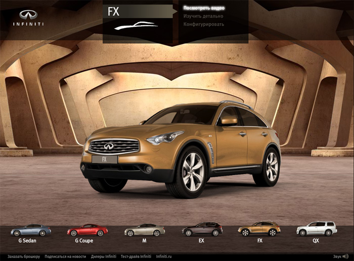 Лаборатория Infiniti от Red KedsПродолжая сотрудничество с компанией Infiniti в России, креативное агентство Red Keds разработало промосайт infiniti-lab.ru - виртуальную лабораторию Infiniti.Часто ли вам удается посещать автосалоны, чтобы познакомиться поближе с понравившимся автомобилем, почувствовать на что он способен, узнать о нем все подробности и в итоге понять, подходите ли вы друг другу? Или даже так: когда вы были в последний раз на тест-драйве? Посетитель сайта попадает в виртуальный подземный бункер -лабораторию Infiniti, где представлен весь модельный ряд автомобилей этой марки. Шесть разных динамичных роликов демонстрируют всю мощь и скорость моделей. Посетители промосайта имеют возможность собрать "свою" Infiniti, подобрав цвет машины, отделку салона и комплектацию авто. Таким образом, после пребывания в виртуальной лаборатории у человека сложится детальное представление о своей будущей машине. Перед Red Keds стояла задача разработать русскую версию сайта www.infinitivisualiser.com. Помимо адаптации сайта, агентством была проделана большая работа: разработка сценариев нескольких роликов на сайте и их реализация, создание 3D-экстерьеров всех моделей (для четырех из которых был воспроизведен также и интерьер), адаптация европейской версии дизайна и контента сайта. Состав творческой группы Руководитель проекта: Олег Зильберг Арт-директор: Евгений Стройнов Менеджер: Михаил Бродников, Константин Кацев Руководитель по 3D: Алексей Комаров 3D: Юрий Цылин, Алексей Михалко, Андрей Красавин, Данила Пешков, Евгений Урусов, Максим Челядников, Павел Ледин, Дмитрий Коршунов Flash-программирование: Илья Рыжков, Рустам Муртазин PHP-программирование: Иван Брылев Дизайнеры: Роман Емельянов, Михаил Ткаченко, Альберт Поляков, Стас Поляков Редакторы: Алина Базелюк, Илья Петров Музыка: Альберт Неджидов Техническая поддержка: компания Smarthead Со стороны компании Infiniti: Анастасия Глебова, Ольга Филиппова |