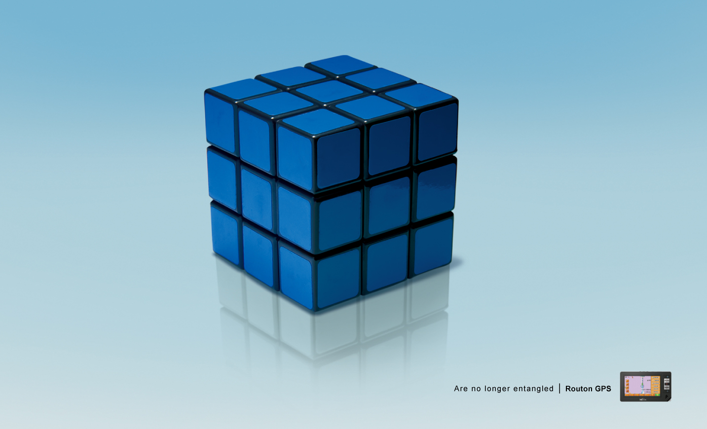 Никакой больше путаницыРеклама GPS-навигатора RoutonШанхайское агентство ZR4218AD разработало рекламу gps-навигатора от ведущего поставщика телекоммуникационных решений в Китае - компании Routon Чтобы показать, что с навигатором Routon просто невозможно запутаться в пересечениях улиц, креативщики использовали сверхупрощенные кубик Рубика и китайскую головоломку. Это не первое обращение к популярнейшим головоломкам в рекламе GPS. Euro RSCG Buenos Aires использовало такой подобный ход в рекламе автомобилей Peugeot, оснащенных навигатором. Состав творческой группы Advertising Agency: ZR4218AD, Shanghai, China Art Directors: Richie Zhao, Huailiang Sun Photographer: Meng Zhang Copywriter: Lynn Xu |