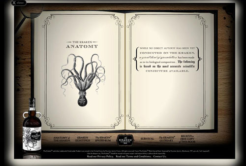 Вся правда о КракенеРекламная кампания нового рома The Kraken RumНовый ром американской компании Proximo Spirits получил название The Kraken Rum и для его продвижения используется старая легенда о Кракене. Кракен - это мифическое гигантское морское чудовище, ставшее известным по описаниям норвежских моряков. Несмотря на всю его мифичность, шведсвкий врач и натуралист Карл Линней включил Кракена в первое издание своего известнейшего произведения "Система природы", в котором классифицировал чудовище как головоногое и обозначил его под именем Microcosmus. Но при последующих переизданиях книги упоминания о Кракене были исключены. Рекламная кампания "Put A Beast In Your Belly" или "Помести зверя в свой живот" включает в себя три ролика, подробно рассказывающих как легенду о Кракене, так и о самом продукте, промо-сайт, книгу, которая пока существует только в онлайн варианте, и иные печатные материалы. Потрясающая по своему графическому исполнению, кампания создана агентством Dead As We Know It, которое уже не первый раз работает с алкогольными брендами. В 2007 агентство разработало очень интересный промо-сайт исландской водки Reyka, также использовав множество рисунков. Глеб Кузнецов, Sosatv.ru Состав творческой группы Agency: Dead As We Know It, New York Client: The Kraken Rum Creative Director: Mikal Reich Copywriter: Ella Wilson Art Director: Charmaine Choi Designer: Charmaine Choi Movie Animator: Ariane Irle Web Developer: Will Langley Music Composer: Chris Hicken Music Company: Cantinero Music |