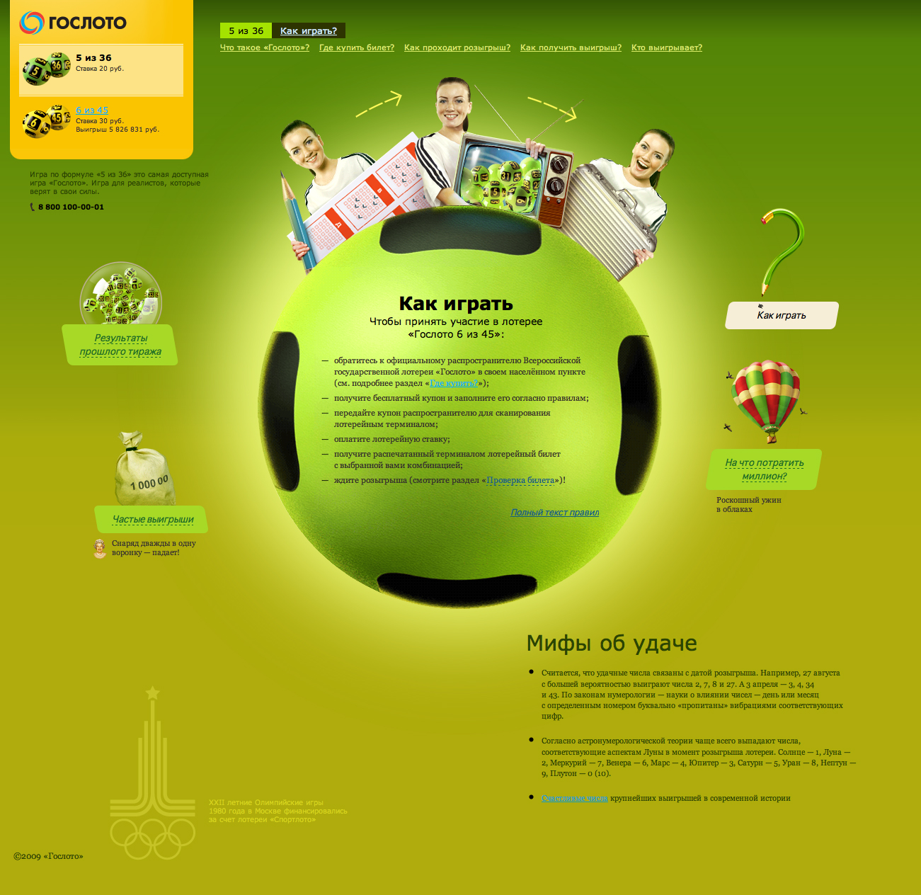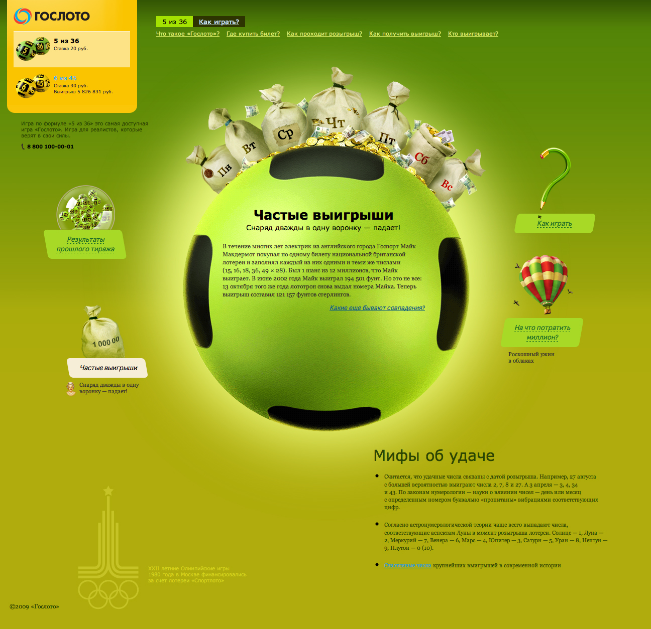 Жизнь – это лотереяТеперь в «Гослото» можно играть каждый деньВсероссийская государственная лотерея «Гослото» запускает новую игру по формуле «5 из 36». Продажа билетов начнется 23 октября, а первый тираж состоится уже 6 ноября. Лотерея «5 из 36» – самая популярная игра в Советском союзе. В некоторых тиражах «5 из 36» участвовало до 30 миллионов билетов. Именно на средства от ее проведения была проведена знаменитая Олимпиада 1980 года. Правила с тех пор не изменились, но сама игра стала быстрее и удобней. Новый продукт обладает массой конкурентных преимуществ, которые выгодно отличают «Гослото 5 из 36» от других игр, присутствующих на рынке. Одно из преимуществ заключается в стоимости – минимальная ставка всего 20 рублей. Тиражи проходят каждый день, семь раз в неделю в 21:00 по московскому времени. Вдобавок, лотерея «5 из 36» так же высокотехнологична, как и другие продукты «Гослото», что позволяет сделать процесс игры прозрачным для наших участников. Выигрыши в «Гослото 5 из 36», в отличие от игры «6 из 45», фиксированы и зависят от количества угаданных чисел: 2 числа – 40 рублей 3 числа – 200 рублей 4 числа – 2000 рублей 5 чисел – в зависимости от накопленного суперприза «Мы возлагаем большие надежды на игру по формуле «5 из 36». Это единственная тиражная лотерея в России, розыгрыши которой проводятся ежедневно, – заявил Директор по маркетингу «Гослото» Денис Кусенков. – Она пользовалась огромной популярностью у старшего поколения, и мы уверены, что она будет интересна как нашим постоянным, так и новым участникам». Запуск «Гослото 5 из 36» дополняет линейку классических лотерей и делает участие в нашей лотерее еще привлекательнее. Теперь у участников «Гослото» появилась возможность выбирать игру по своему бюджету и частоте розыгрыша. |