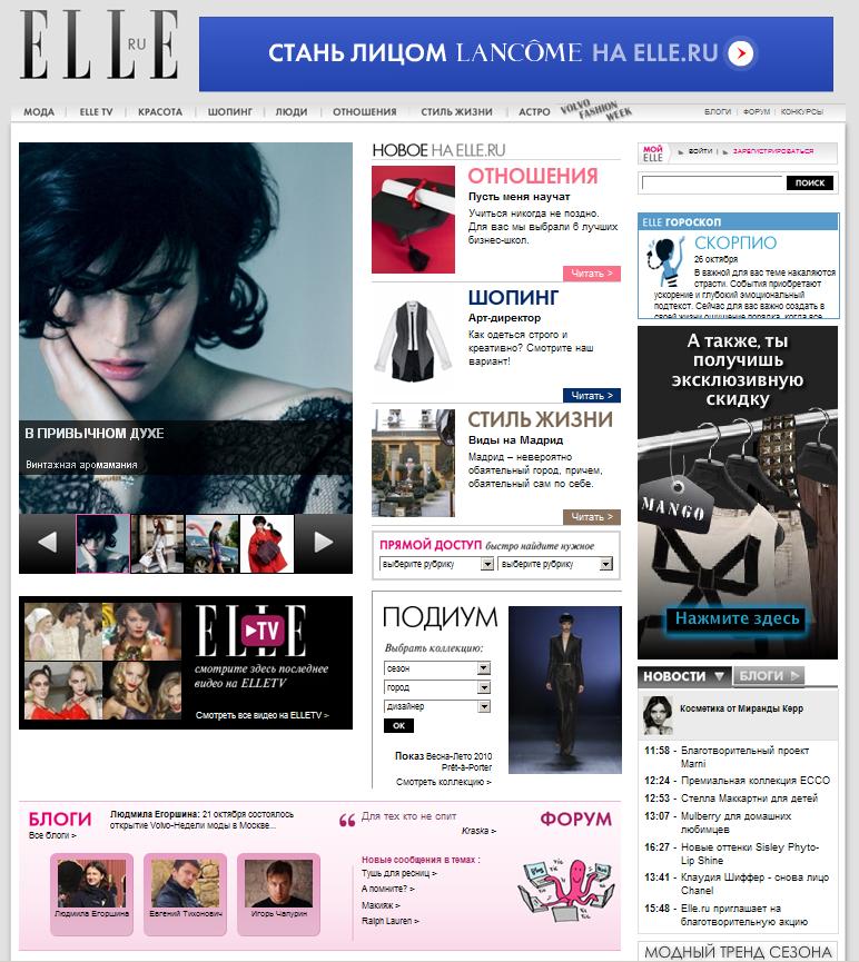ELLE полностью обновил свой сайтСайт elle.ru, позиционирующийся в сегменте премиум интернет-ресурсов о моде и красоте в России, перезапустился в полностью обновленном виде.Сайт существует с 2005 года, и с самого момента запуска является качественным самостоятельным продуктом, отражающим и активно поддерживающим концепцию и ценности бренда ELLE. В целях повышения удобства пользования сайтом, улучшения структуры и содержания было принято решение о перезапуске сайта на новой платформе, позволяющей существенно расширить возможности для пользователей, с большим количеством новых рубрик и сервисов. Эксклюзивные фото и видео- отчеты со всех международных недель моды по-прежнему являются одной из важнейших составляющей раздела о моде. Стоит отметить новый уникальный сервис - интерактивный калькулятор калорий. Девушки, следящие за своим весом, смогут без труда рассчитать, какие блюда включить в ежедневный рацион, не нанеся при этом вреда фигуре. Ещё одно важное нововведение на elle.ru - блоги редакторов. Блоги будут вести как члены редакционной команды ELLE, так и приглашенные популярные авторы. |
