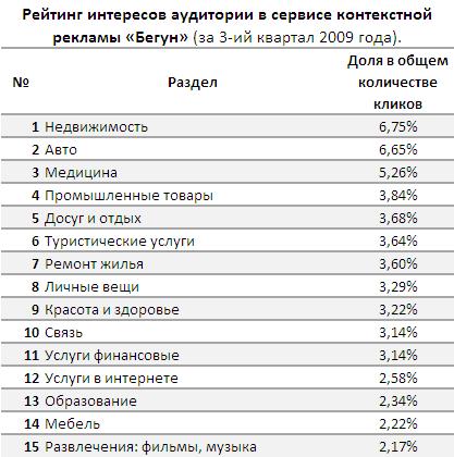 Пользователи искали недвижимость больше, чем автомобили"Бегун" оценил контекстные запросы в III кварталеСамая большая доля интереса пользователей в III квартале с небольшим перевесом досталась "Недвижимости", оценила сеть контекстных объявлений "Бегун". Категория "Автомобили" переместилась на второе место. В "Бегуне" считают, что люди активно интересовались, действительно ли предложения на рынке недвижимости так доступны, как обещает реклама. Тем не менее, представители автомобильной отрасли по-прежнему остаются самыми активными, несмотря на то, что доля расходов сегмента несколько снизилась и составила 10,37%. В этот период на рынке проводилось множество рекламных кампаний, наряду с новыми предложениями были активны скупщики б/у транспорта и автосервисы. Традиционно III квартал характеризуется снижением деловой активности, напоминают в "Бегуне". Это связано с сезонностью: большая часть квартала приходится на конец лета, в период отпусков. Но рекламодатели проявляют активность для удержания позиций на рынке. Так, наиболее интенсивный рост показала категория "Связь". Например, рекламные кампании операторов 4G, а также операторов альтернативной междугородной связи увеличили долю категории в общем рекламном бюджете более чем на 40% - до 3,17%.