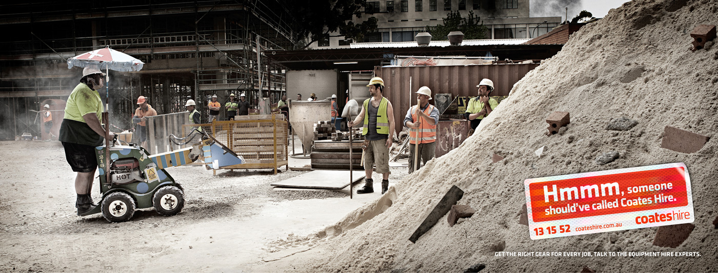 Coates Hire против некачественной стройкиРеклама агентства по лизингу строительного оборудованияЧтобы показать, насколько важно использовать на стройке подходящую технику и полноценное оснащение рабочих, агентство Ideaworks из Сиднея разработало для компании Coates Hire юмористическую рекламу. Все что угодно может ухудшить качество работы строителей: от отсутствия нормального бульдозера или стремянки, до размещения всего одной туалетной кабинки на всех. В подобных случаях просто, чтоб кто-то срочно позвонил в Coates Hire и решил эти проблемы, сообщает слоган кампании. Состав творческой группы Advertising Agency: Ideaworks, Creative Director: Paul Knights Associate Creative Director: James Gali Barrow Art Director: James Gali Barrow Copywriter: Tom Russell Photography: Josh Dasey Creative: Adam Guastella Retouching: Andre Matkovic Strategy Partner: Matt Newell Strategy Director: Paul Southgate Account Director: Meg Badelow Senior Account Manager: Luke Pavan |