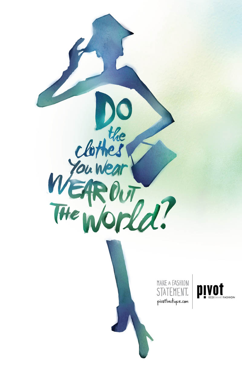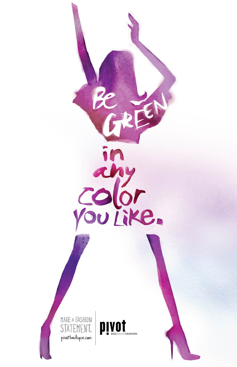 Бутик для зеленыхEuro RSCG Chicago разработало рекламу эко-бутика PivotТема защиты окружающей среды не теряет своей актуальности. В том числе и для мировой fashion-индустрии. Модный бутик Pivot специализируется на продаже одежды, которая сделана в полной гармонии с природой и без нанесения ей вреда. На этом и фокусируется месседж рекламы от чикагского агентства. Как заявлено, цель кампании пояснить, что дружественная экологии мода не только благоприятна для планеты, но в то же время и очень элегантна. Состав творческой группы Advertising Agency: Euro RSCG Chicago, IL, USA Creative Director: Steffan Postaer Art Director: Rei Young Copywriters: Curtis Green, Regan Kline Illustrator: Rei Young |