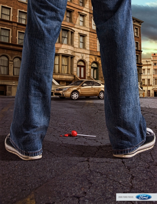 Примечательно, что кампания использует потрясающий в своей лаконичности слоган: просто "Ford Focus 2009" - остальное ясно без слов. |