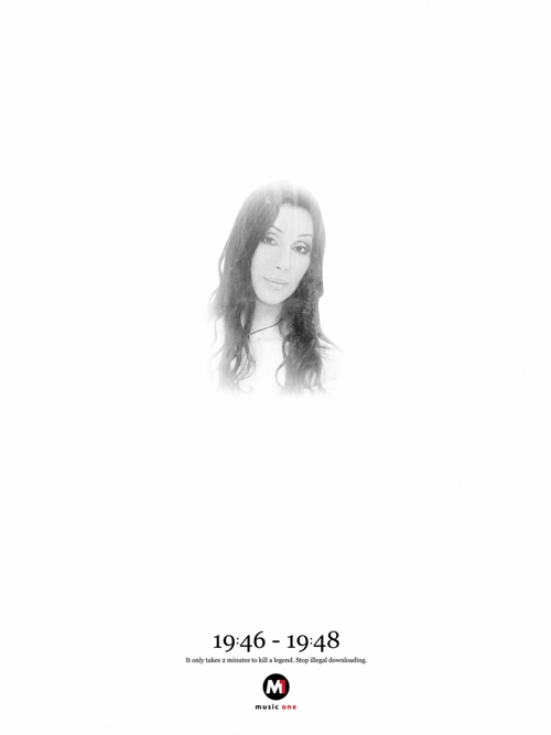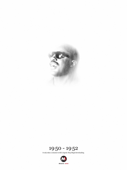 Две минуты, чтобы убить легендуРекламная кампания против нелегального скачивания музыки"Это займет только лишь две минуты, чтобы убить легенду. Остановите незаконное скачивание", - призывает слоган кампании музыкального магазина Music One, созданной филиппинским агентством DM9JaymeSyfu. Принты изображают популярных музыкантов Стиви Уандера, Шер и Мика Джагера, под фотографиями которых словно бы проставлены даты жизни, причем весьма короткой, поскольку они составленные из времени начала и окончания закачки песни. Это уже не первая работа агентства для Music One, в прошлом году Sostav.ru писал об их рекламе, призывающей покупать музыкальные диски сейчас, чтобы в будущем иметь возможность продать их за кругленькую сумму Состав творческой группы Advertising Agency: DM9JaymeSyfu, Manila, The Philippines Executive Creative Directors: Merlee Jayme, Eugene Demata Creative Director: Jerry Hizon Art Director: Miko Quiogue Producer: Jess Ramo Copywriter: Biba Cabuquit |