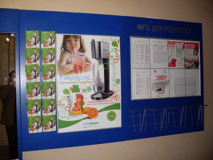 Реклама уникальных сифонов в школах столицыMaxMediaGroup для "SodaStream"По заказу компании "ХоумСода" MaxMediaGroup проводит рекламную кампанию уникальных сифонов по приготовлению лимонада в домашних условиях "SodaStream". В кампании задействовано 150 рекламных носителей агентства в расположенных общеобразовательных школах Москвы. |