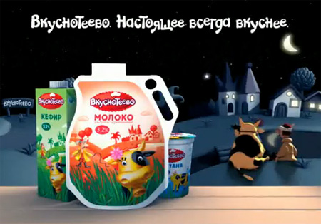 Основным информационным поводом стала обновленная упаковка продуктов Вкуснотеево, а также промо-акция, стартовавшая в ноябре в нескольких регионах России. Герои роликов - хорошо знакомые всем персонажи Пастух и Корова. Партнером Соуса выступила анимационная студия "Луноход" (Санкт-Петербург). Ролики размещаются на региональном ТВ начиная с ноября 2009 г. Отраслевой портал UNIPACK.RU |