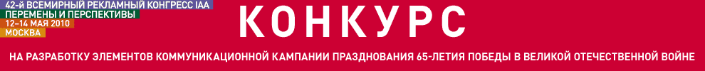 Ассоциация коммуникационных агентств России, Российское отделение IAA, Комитет рекламы, информации и оформления города Москвы, дирекция Московского Международного Фестиваля рекламы и маркетинга Red Apple, дирекция Московского фестиваля социальной рекламы объявляют Конкурс на разработку элементов коммуникационной кампании празднования 65-летия Победы в Великой Отечественной войне.