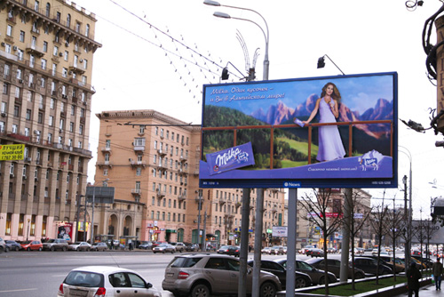 Outdoor и indoor "Альпийского мира" MilkaРекламная кампания в поддержку шоколадаРекламная кампания в поддержку шоколада Milka, построенная на идее мысленного переноса в альпийский мир, проводится с начала осени 2009 года. Слоган рекламной кампании: "Один кусочек - и Вы в Альпийском мире!" В поддержку этой кампании Ogilvy адаптировало ролик, созданный Ogilvy Frankfurt (в национальном эфире - с 01 сентября 2009 г.), забрендировало лифты в бизнес-центрах (сентябрь 2009 г.) и разработало целый ряд нестандартных идей, переносящих россиян из осени в радостный альпийский мир Milka. С 01 ноября 2009 года альпийские пейзажи с голубым небом, ласковым солнцем, величественными горами, чистыми ручьями и зеленой травой появились на улицах Москвы, Санкт-Петербурга и еще 12 городов России. Кусочек нежнейшего шоколада Milka тает во рту - и Вы чувствуете себя безмятежно, словно лежите в гамаке на альпийском лугу и слушаете щебетание птиц: Билборды, сити-форматы и перетяжки были разработаны агентством Ogilvy в рамках поддержки кампании "Один кусочек - и Вы в Альпийском мире!". Создать наиболее реалистичную картину погружения в альпийский мир удалось с помощью экстендеров на билбордах (девушка стоит на балконе на фоне Альп) и нестандартных перетяжек (девушка лежит в гамаке). За размещение отвечало агентство Mindshare International. Помимо российских улиц, альпийский мир вместе с альпийским шоколадом Milka проник и во многие торговые точки и центры Москвы. С 01 ноября 2009 посетители ТРЦ "МЕГА Белая Дача" свободно и с удовольствием прогуливаются по сочному зеленому лугу среди альпийских вершин! Каждый желающий "примерить" альпийский пейзаж на себя проходит по большому коридору Milka и любуется своим отражением в зеркале на фоне Альп. Визуализация альпийского мира в ТРЦ осуществлена промомаркетинговым агентством EMG. Необычные POS-материалы были размещены в торговых сетях Москвы. Для того чтобы лучше ориентироваться в горной местности и как следует насладиться красотами альпийских пейзажей, Ogilvy разработало необычный стереоскоп Milka (идея - промомаркетинговое агентство EMG). Атмосферу альпийского луга в магазине создает специальная выкладка шоколада Milka. А рядом с палетами с сочной зеленой травой пасется обаятельная корова Milka