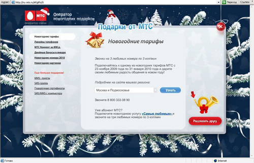 Креативная идея и реализация сайта http://ny.mts.ru - Агентство интернет - проектов BBDO Interactive: |