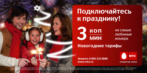 Новогодние тарифы от МТСЛюбимые номера как бенгальские огниНа федеральных телеканалах стартовала рекламная кампания в поддержку новогоднего предложения от МТС. Креативную концепцию и стратегию коммуникации разработало агентство BBDO Moscow. «Идея ролика в том, что под Новый год стало легко делиться настроением с близкими, - говорит копирайтер BBDO Moscow Татьяна Нисенбаум. - Благодаря новогоднему предложению МТС теперь можно звонить трем самым близким людям по 3 копейки в минуту». В ролике использована песня группы Queen "А kind of magic". Среди основных каналов коммуникации выбраны: ТВ, наружная реклама, радио, пресса, Интернет. Для новогодней кампании МТС Агентством интернет - проектов BBDO Interactive разработан специальный промо-сайт. Евгения Кузнецова, Sostav.ru Агентство: BBDO Moscow Креативный директор: Андреас Тоскано (Andreas Toscano) Директор по работе с клиентами: Снежана Дубинина Директор по разработке бренд-стратегии: Анна Захарова Старший арт-директор: Иван Богданов Старший копирайтер: Татьяна Нисенбаум Музыкальный продюсер: Дмитрий Рубежов Продюсер: Станислав Артимович Менеджер по работе с клиентами: Светлана Богачева