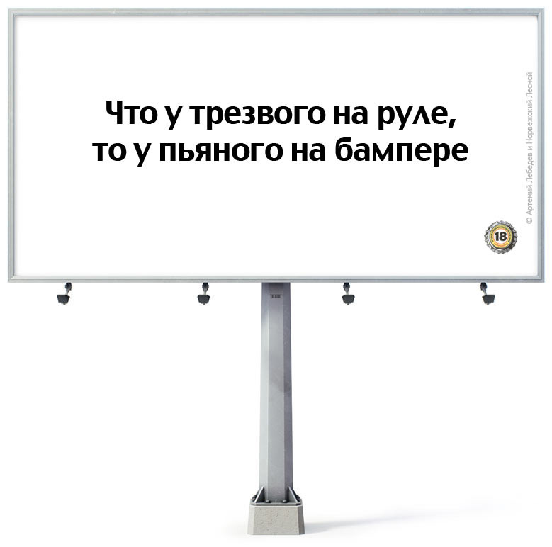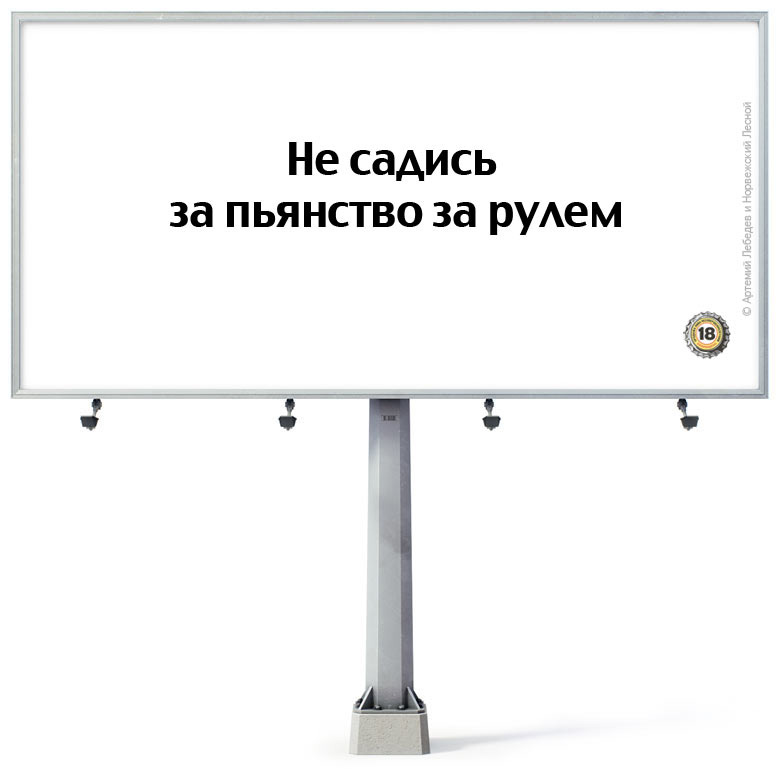 Что тебя останавливает, пьяный водитель?Шорт-лист работ совместной акции Grolsh и Артемия ЛебедеваПодведены итоги третьего этапа совместной акции пива Grolsh и дизайнера Артемия Лебедева - "Что нас удерживает?". Напомним, в России уже размещается телевизионная рекламная кампания под этим слоганом, а суть акции в создании всеми желающими хорошую социальную рекламу, то есть рекламу, которая будет работать, которая заставит людей думать и заставит их изменить свою точку зрения на проблему употребления пива несовершеннолетними и пьянство за рулем. "В России бывает хорошая реклама и практически не бывает хорошей социальной рекламы, - считает Артемий Лебедев. - Основная проблема заключается в том, что у обычной рекламы есть конкретный заказчик, который знает, какое сообщение он хочет донести, а социальная реклама - одноглазое дитя у семи нянек. Социальную рекламу у нас принято размещать в качестве забивочного материала на пустующих рекламных поверхностях. Заказывают такую рекламу равнодушные тетки из муниципалитетов, а делают ее безрукие дизайнеры из РЭУ. Меня это не устраивает". Как было обещано, лучшие работы попадут в декабре на выставку, а потом будут размещены на улицах страны. "Гролш" является вдохновителем и организатором, никаким образом не вмешиваясь в содержание рекламы, как обещает Лебедев. Окончательные итоги будут подведены 7 декабря. Имена победителей будут названы позже, шорт-лист уже сформирован. Работы, созданные Артемием Лебедевым совместно с Норвежским Лесным:
