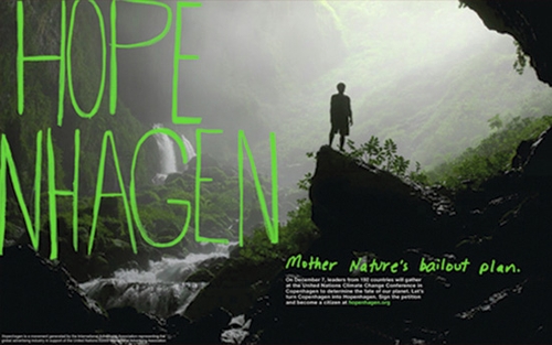 Копенгаген-ХопенгагенГлобальная рекламная кампания привлекает внимание к Конференции ООН по климатуОсенью 2008 генсек ООН Пан Ги Мун собрал ряд крупных рекламодателей и руководителей агентств, чтобы озаботиться судьбой планеты. Генеральный секретарь провел совещание с просьбой о помощи в деле, в котором эти люди понимают прекрасно - к продаже и информированию. Итогом этого своеобразного брифа стало международное движение Hopenhagen, целью которого стало привлечение внимания как можно большего количества людей к Рамочной конференции ООН по климату, проходящей сейчас в Копенгагене. На сайте кампании каждый может внести свою лепту и повлиять на благополучное решение проблемы изменения климата, подписав климатическую петицию ООН. Кампания опирается на ряд крупных игроков рынка, среди которых Coca-Cola, SAP, Siemens и BMW, ряд рекламных агентств, таких как Ogilvy, OgilvyEarth, OgilvyPR, Ketchum, Colle+McVoy, T-sign, Mannov, Zazengo, TakePart, GroupM и Havas, и на множество творчески одаренных людей. Начавшись в сентябре прошлого года, кампания Hopenhagen достигла общемирового масштаба - ее последователи имеются более чем в 50 странах мира. Hopenhagen - это в первую очередь добровольцы, работающие в рекламе, маркетинге и коммуникационных отраслях, которые жертвуют своим временем и ресурсами на создание этой кампании. Представитель Международная ассоциации рекламодателей IAA , которая также задействована в кампании, Майкл Ли отметил, что такая кампания, как Hopenhagen, способствует улучшению репутации рекламного сообщества и позиционированию его как «ответственного гражданина мира».
