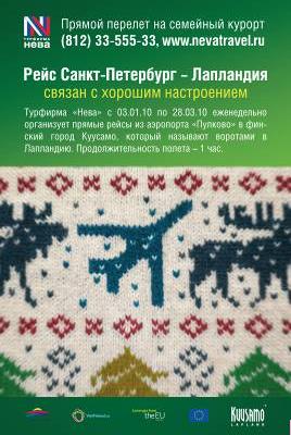 Цели кампании - повышение осведомленности населения Северо-Западного региона России о регионе и курорте Куусамо, формирование имиджа региона и создание спроса на прямой авиаперелет по маршруту "Санкт-Петербург - Куусамо", первые рейсы по которому отправятся в январе 2010 года. Финский регион Куусамо ежегодно привлекает почти миллион туристов, но лишь 10% из них приезжают из России, что объяснялось, прежде всего, транспортной удаленностью Куусамо от Петербурга. В связи с этим агентством было предложено сфокусировать первый этап кампании на преимуществах прямого перелета. На основе анализа рынка, целевой аудитории и позиционирования конкурентов было решено также сделать акцент на том, что Куусамо - финский курорт, ориентированный на семейный отдых и предлагающий возможности для занятия горнолыжным спортом. На ключевом имидже рекламной кампании изображен вязаный свитер с орнаментом в финском стиле. Визуальный образ обыгрывается в тексте: "Рейс Санкт-Петербург - Лапландия. Связан с хорошим настроением". Размещение рекламы осуществлялось на наружных носителях и в популярных печатных изданиях Санкт-Петербурга. Серию PR-активностей в рамках проекта открыли презентация нового туристического направления и пресс-конференция, проходившие в генеральном консульстве Финляндии в Санкт-Петербурге. В пресс-конференции приняли участие представители деловых, новостных и специализированных СМИ. На многочисленные вопросы журналистов отвечали представители проекта с финской и российской стороны, среди них - Пирье Тулокас, заместитель генерального консула Финляндии; Эркки Энккеля, директор проекта Naturpolis Oy; Паули Саапунки, региональный советник; Сергей Тимралиев, директор и председатель совета директоров "Нева Интернейшнл Холдинг"; Максим Пирогов, генеральный директор турфирмы "Нева", и др. А специальным гостем мероприятия стал настоящий Санта-Клаус из Лапландии, который привез журналистам подарки: вязаные сувениры и финские деликатесы. По итогам пресс-конференции вышло более 40 публикаций. Затем, с 19 по 22 ноября, был организован пресс-тур в Куусамо для журналистов 8 целевых изданий. За время путешествия журналисты познакомились со всеми чудесами сказочной Лапландии и достоинствами курорта: прокатились в санях с оленьими и собачьими упряжками и на снегоходах, попробовали свои силы на горных лыжах и сноуборде, отдохнули в знаменитой финской сауне и вновь встретились с Санта-Клаусом. Первый этап коммуникационной кампании продлится до марта 2010 года. |