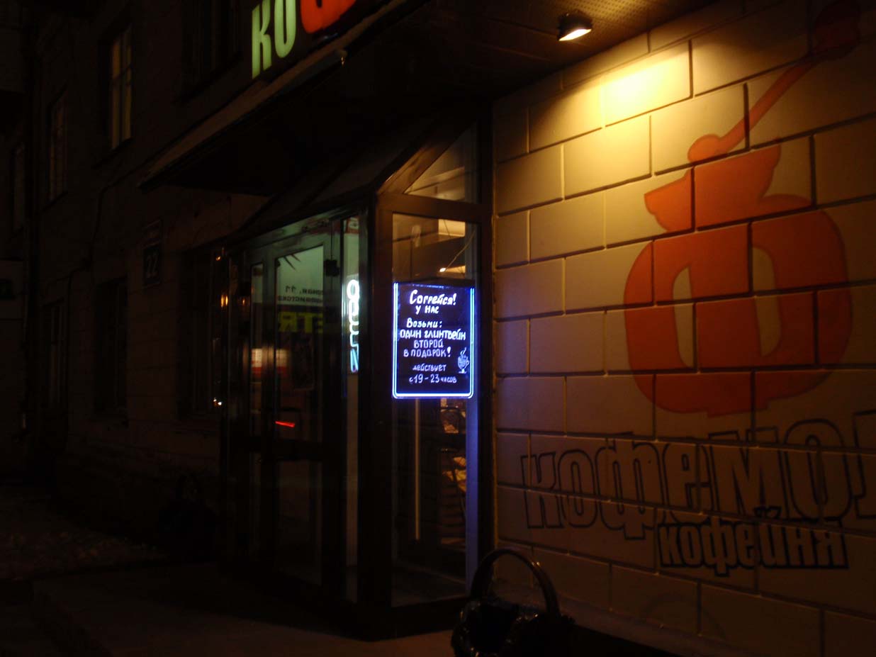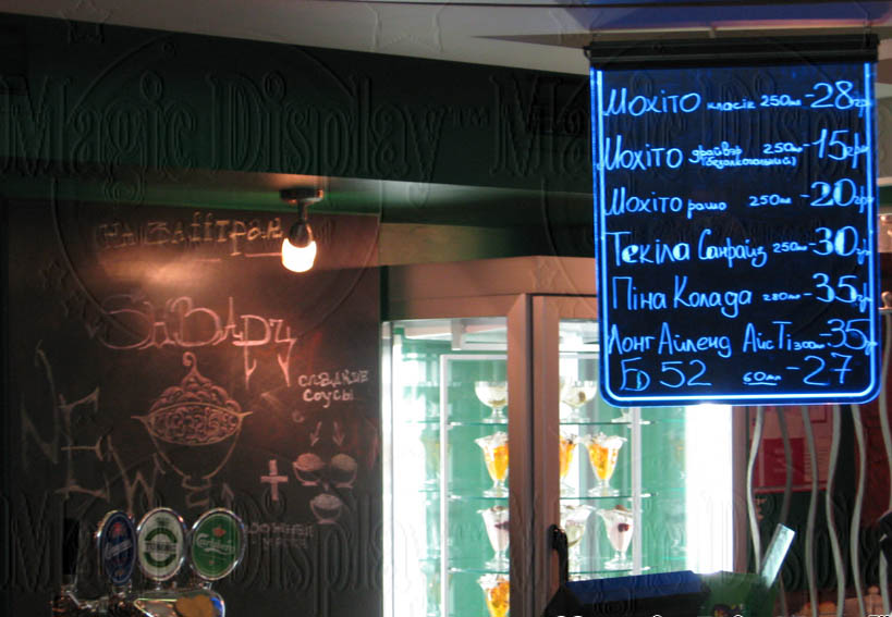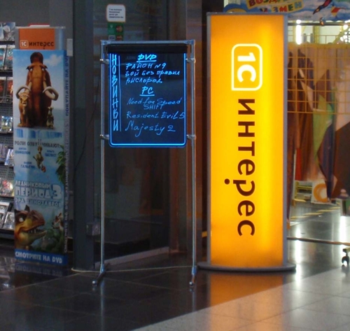 Рекламщикам предложили использовать "неоновую" доску для письмаАгентство "Провинция" придумало флуоресцентную сухостираемую доску для письмаДоска представляет собой пластиковую доску размером 482 на 609 мм. с черной алюминиевой рамкой сверху. Для работы необходима электрическая сеть. Надпись (рисунок) наносится на доску специальным порошковым маркером. При включении доски в сеть надпись начинает светиться. Смена цвета надписи происходит как в ручную так и автоматически. Доступны семь цветов. Удаляется надпись обычной салфеткой. |