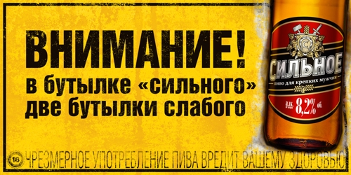 Сильное пивоКреативное агентство FUNC разработало рекламную кампанию по выводу новой марки крепкого пива "Сильное"Кампания разработана весной этого года по заказу ОАО "Томское пиво". Проанализировав потребителей и активность основных игроков, мы выделили коммуникационную нишу, которая позволила отстроиться от конкурентов и привлечь покупателей. Мы сфокусировались на ироничной подаче, без пафоса и возвышения мужественности и труда. Такой подход позволил общаться с потребителем на равных, снизить барьеры недоверия и облегчил восприятие рекламных посланий. В итоге, появилось решение, создающее уникальный образ марки с индивидуальным характером. В рамках ограниченного бюджета использовались только печатные материалы: наружная реклама и ПОСМ. Помимо прямой рекламы распространялись материалы (плакаты и стикеры) для использования на рабочих местах. По итогам кампании уровень продаж по городам сибирского региона достиг 30-50% от продаж лидера в этих городах. ![]() ![]() ![]() ![]() ![]() ![]() ![]() ![]() ![]() ![]() |