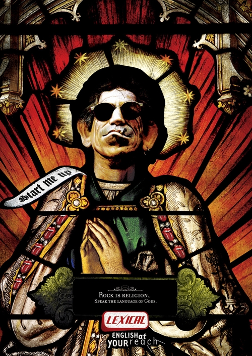 Божественный английскийНеобычная кампания для языковой школыБразильское агентство Yeah! Разработало интересную кампанию для школы английского языка Lexical English School, совместив на своих принтах религиозные и музыкальные мотивы. Для привлечения внимания к изучению английского агентство использовало образы известных рок-музыкантов Джона Леннона, Кейта Ричардса и Элвиса Пресли, приравняв их к святым и даже божествам. Принты выпущены под слоганом "Рок - это религия. Говорите на языке богов". Состав творческой группы Advertising Agency: Yeah! Brazil Creative Director: Sandro Serzedello Art Director / Illustrator: Bruno Regalo Copywriter: Paulo Max |