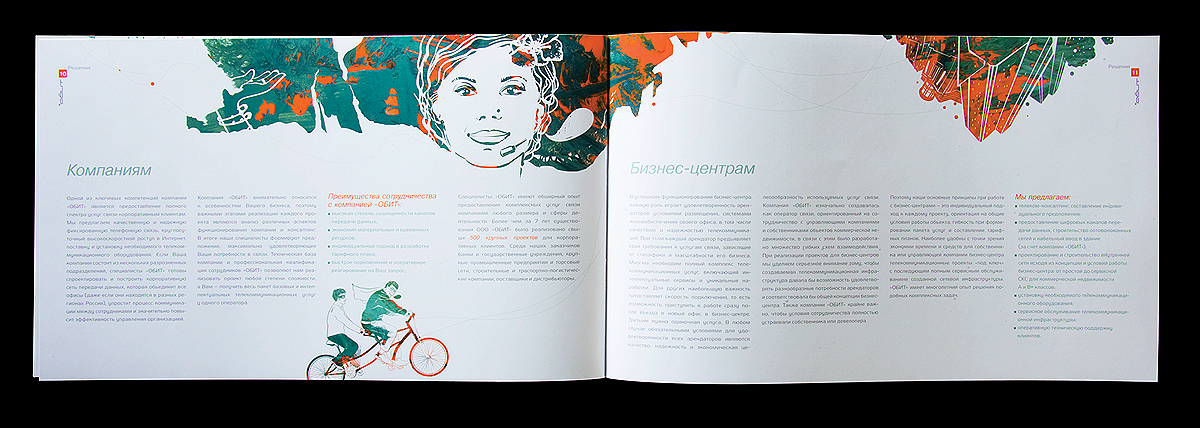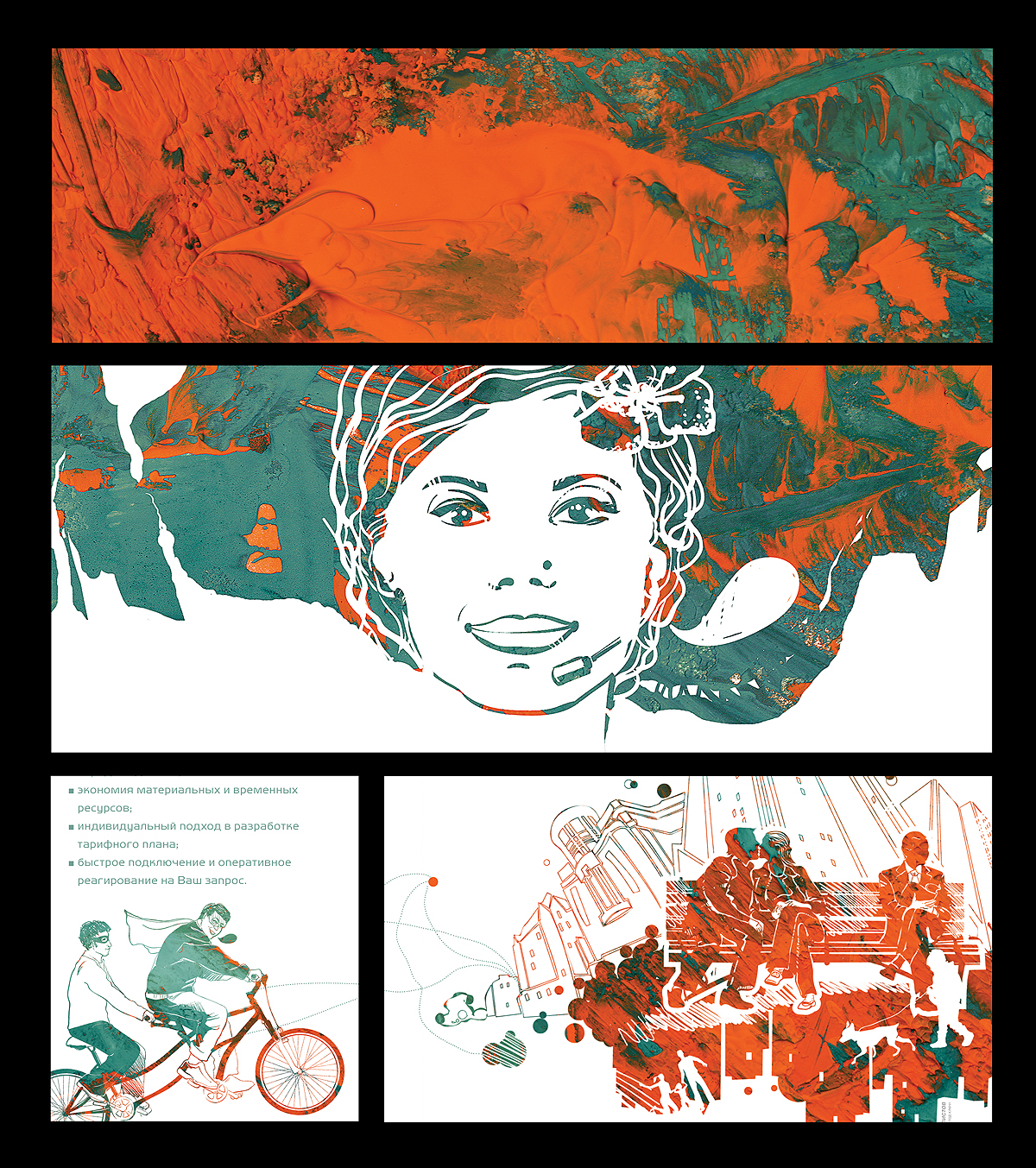 Студия DEZA продемонстровала художественный взгляд на телекоммуникацииХудожественной темой работы для телекоммуникационной компании "ОБИТ" стали "живые мазки кисти", как олицетворение живой творческой единицы с присущей ей индивидуальностью.Цветные, фактурные, рельефные мазки, живые точки объединены, они рождают узнаваемые образы и в своем единении связаны с идеей сети. Демонстрируется связь между маленькими индивидуальными локациям и большими "образованиями". В работе хотелось избежать упорядоченных и сухих линий, ведь технологии и связь - это вещи точные, но, тем не менее, не лишенные живой творческой основы. Состав творческой группы Креативный директор: Александр Суворов Дизайнеры: Анастасия Жуковская, Нина Клеопина |