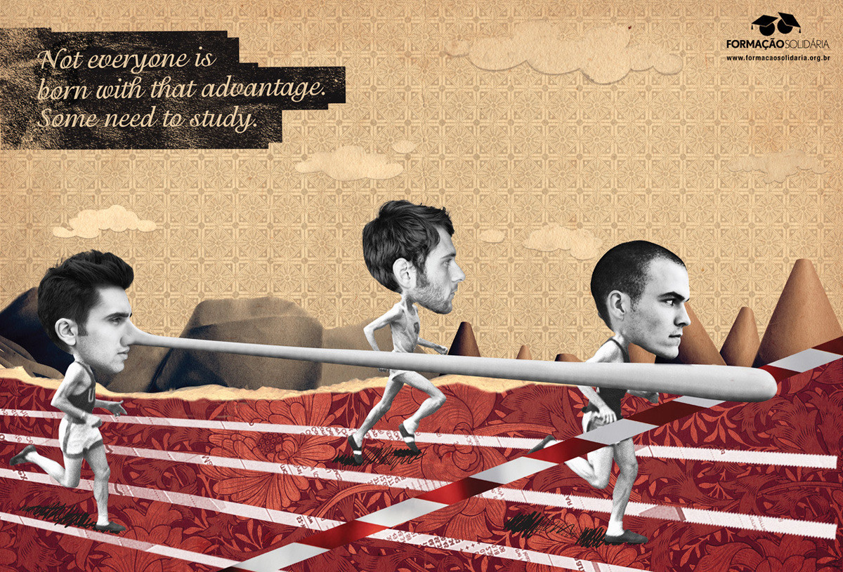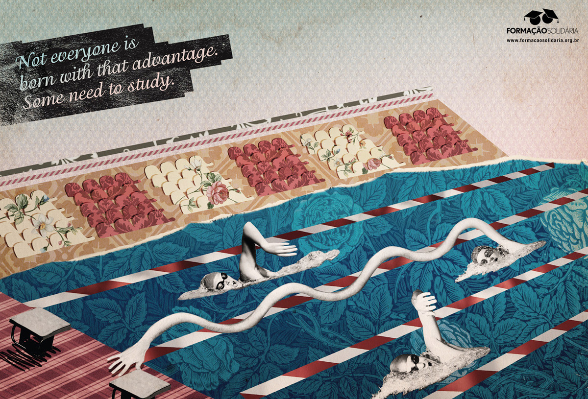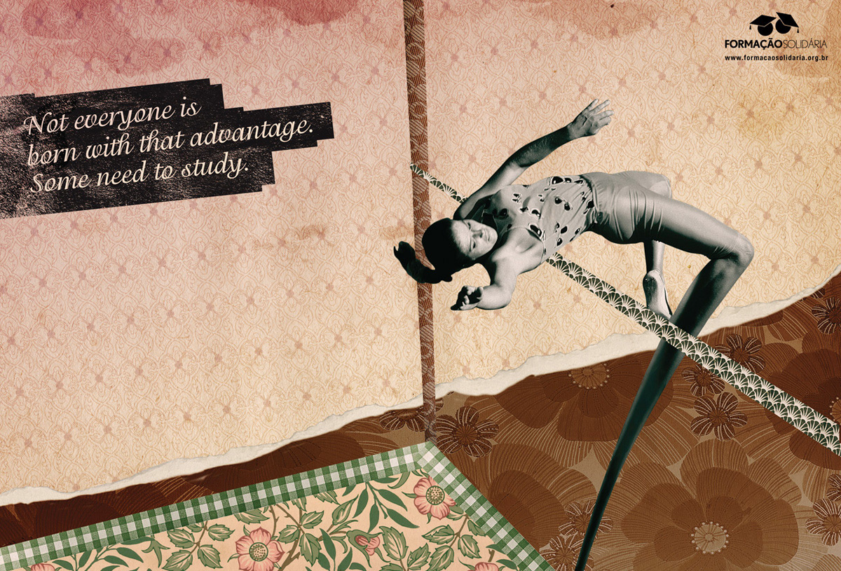 Каждый добьется преимущества с Formacao SolidariaКампания бразильской образовательной организацииFormacao Solidaria – это бразильская общественная организация, деятельность которой направлена на социальную интеграцию людей посредством получения образования. Организация помогает малоимущим поступить в институт и в дальнейшем получить хорошую работу. Принты, созданные агентством Bronx, изображают спортсменов, обладающих невиданным преимуществом, помогающим им одерживать победу, а слоган гласит, что не каждый обладает подобными преимуществами и им необходимо учиться, чтобы добиться успеха. Состав творческой группы Agency: |