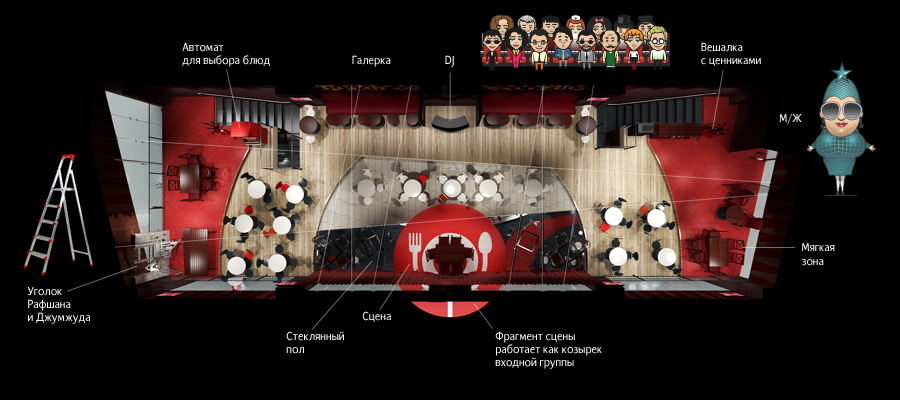 Студия Артемия Лебедева оформила Comedy CafeКак сообщалось в ноябре, Группа компаний "Ташир" совместно с компанией "Комеди Клаб продакшн" готовят к открытию сеть тематических кафе Comedy Cafe. Первое заведение откроется 21 ноября 2009 года в Москве в торгово-развлекательном центре "РИО" на Дмитровском шоссе. Следующие кафе появятся в 2010 году в торгово-развлекательном центре "РИО" в Белгороде и в офисном центре КГС в Калуге. В течение пяти лет группа рассчитывает открыть 50 ресторанов сети в торговых центрах, принадлежащих ГК "Ташир", а также на других площадках. Основным инвестором проекта является группа "Ташир", за идею создания и концепцию отвечает "Комеди Клаб продакшн". В каждое Comedy Cafe "Ташир" намерен инвестировать до 1 миллиона долларов. Окупаемость рассчитана на 2-3 года. Оформление новой сети было поручено Студии Артемия Лебедева, специалисты которой разработали логотип и дизайн интерьера заведений. ![]() ![]() Иллюстрации с сайта Студии Артемия Лебедева Состав творческой группы Логотип:арт-директор - Артемий Лебедев дизайнер - Илья Михайлов менеджер - Андрей Дьяков «Фишки»: Худрук - Артемий Лебедев арт-директор - Илья Михайлов штурмовики - Людвиг Быстроновский, Андрей Зубрилов, Антон Шнайдер, Татьяна Деваева, Василий Сергеев, Олег Морев, Максим Дегтярев, Богдан Кравцов дизайнер - Василий Дубовой иллюстратор - Егор Жгун шрифтовик - Елена Новоселова менеджер и штурмовик - Андрей Дьяков Интерьер и экстерьер: Худрук - Артемий Лебедев арт-директор - Илья Михайлов архитектор - Павел Леонтьев иллюстраторы - Егор Жгун, Яна Москалюк моделлер - Дмитрий Долгих верстальщик - Владимир Зотов менеджер - Андрей Дьяков |