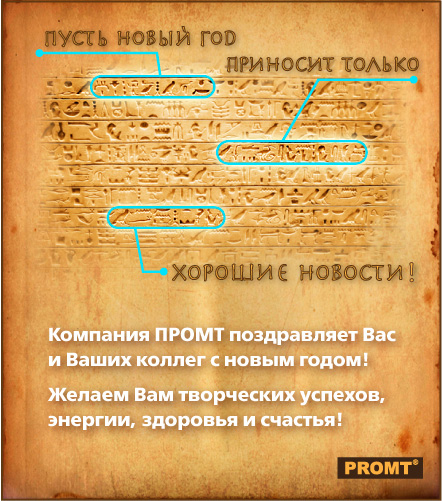 Компания ПРОМТ поздравляет Вас с наступающим новым годом. Спасибо за внимание к нам, и до новых встреч в 2010 году!