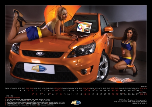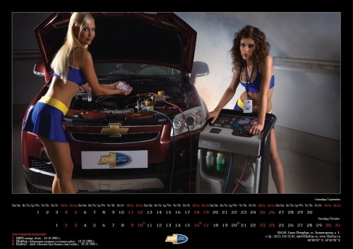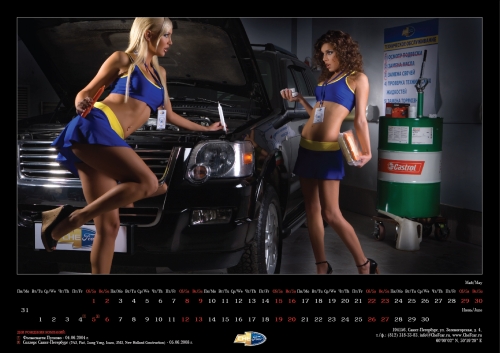Конкурсный календарь-2010. «Альба» показала разницу между блондинками и брюнеткамиДизайн-студия «Компании Альба» выполнила разработку и изготовление календаря для компании «ШефКар», работающей на рынке кузовных и малярных работ и ремонта автомобилей. Как пояснили Adlife.spb.ru представители дизайн-студии, дизайнерам захотелось сделать к этому году «что-то совершенно новое, забавное и всё же знакомое, такой настенный источник позитивной энергии». Календарь получил название «Тайны ремесла 2010». Все фотографии для него были сделаны не в студии, а на настоящей ремзоне. Дизайнеры, по их словам, постарались воплотить новые идеи. На каждой фотографии сосуществует реальное исполнение одной из специфических ремонтных работ и распространенный миф о том, как эта работа происходит. «Если вы посмотрите на фотографию, то заметите, что одна модель – брюнетка - делает правильно: выправляет вмятину, заправляет кондиционер, делает заплатку на шине,- поясняют авторы календаря. - Вторая же, "блондинка", зашивает нитками шину, вантусом выправляет вмятину, пытается поставить обыкновенные свечи вместо автомобильных. Таким образом мы ушли от обыденных снимков девушек на фоне авто для автомобильных компаний».