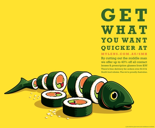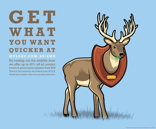 MyLens Optical призывает увидеть мир во всей красеРеклама сайта австралийской оптической фирмыУсилиями Whybin/TBWA/Tequila из Сиднея была создана реклама для компании MyLens, которая предлагает своим клиентам очки, контактные линзы и сопутствующие товары. Серия принтов направлена на привлечение посетителей на сайт компании, на котором можно ознакомиться с ассортиментов продукции и сделать заказ. Основной месседж кампании состоит в том, что с помощью MyLens Optical каждый сможет увидеть больше: оленя не только в виде трофея на стене охотника, но и вживую, или же сам болид Формулы 1, а не только следы от шин на треке. "В среднем мы предлагаем до 40% всех контактных линз и очков по цене в 39 долларов. Бесплатная доставка заказов на сумму более 115 долларов, а также скидки Фонда здравоохранения. Плюс ко всему, мы гордимся тем, что австралийцы" Состав творческой группы Advertising Agency: Whybin/TBWA/Tequila, Sydney, Australia Executive Creative Director: Garry Horner Creative Director: Matt Kemsley Art Directors / Copywriters: Matt Kemsley, Garry Horner, David O'sullivan, Srinath Mogeri, Glennz.com Designers: Matt Kemsley, Chris Mawson, Glennz.com Illustrator: Glennz.com Account manager: Paul Bradbury |