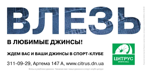 Три слова, продвигающие спортРекламная компания для фитнес-центра "Цитрус"Свежее видение для свежего центра было создано Pulse Progressive Company! Абсолютно новый подход был задуман во всем: в названии, в логотипе, в позиционировании и в рекламной компании. Цель - сделать так, чтобы спортом увлеклись все, даже те, кто уже увлечен! Построение рекламной компании было рассчитано исключительно на наружную рекламу в радиусной локации самого центра. Креативом рекламной компании стало - слово. Только одно слово, которое создаст эмоцию и реакцию. Серия биллбордов из трех слов - жжём, елку и влезь. Состав творческой группы: Агенство: Pulse Progressive Company Креатив: Воронов Владимир Дизайн: Сергеев Дмитрий |