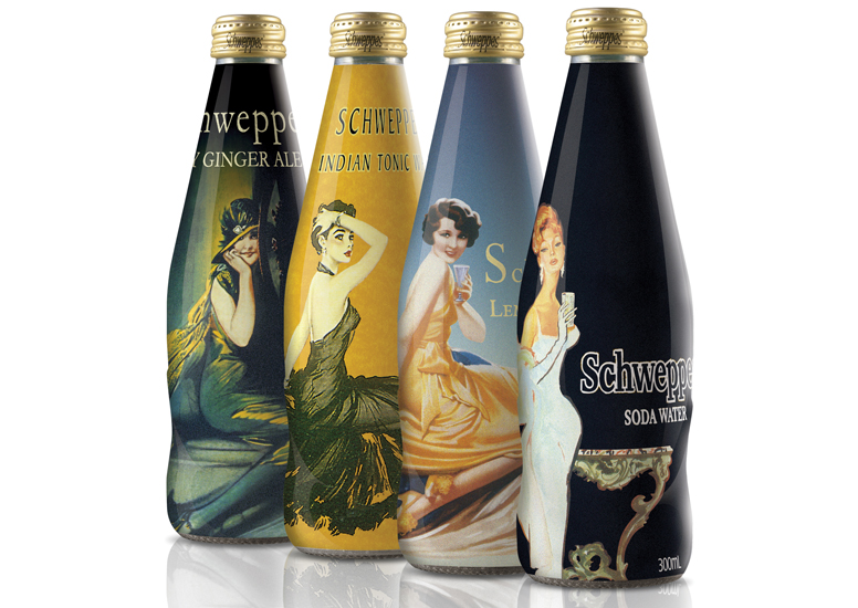 Эксклюзивный SchweppesВинтажные бутылки в ограниченном тиражеЕще один дизайн от агентства DiDonato из Австралии, созданный для компании Schweppes. Компания пошла по примеру Coca-Cola, которая неоднократно выпускала эксклюзивные дизайнерские бутылки. Красивые винтажные бутылки с откручивающейся крышкой и объемом 0,3 специально сделаны только для продажи в барах, кафе и ресторанах. Дизайн разработан для всей линейки продуктов Schweppes - имбирного пива, лимонада, газированной воды и тоника. |