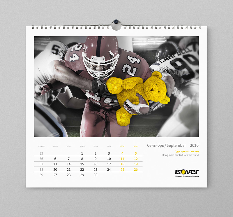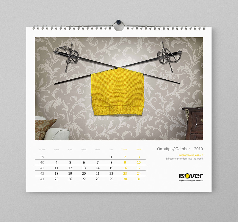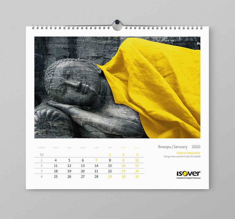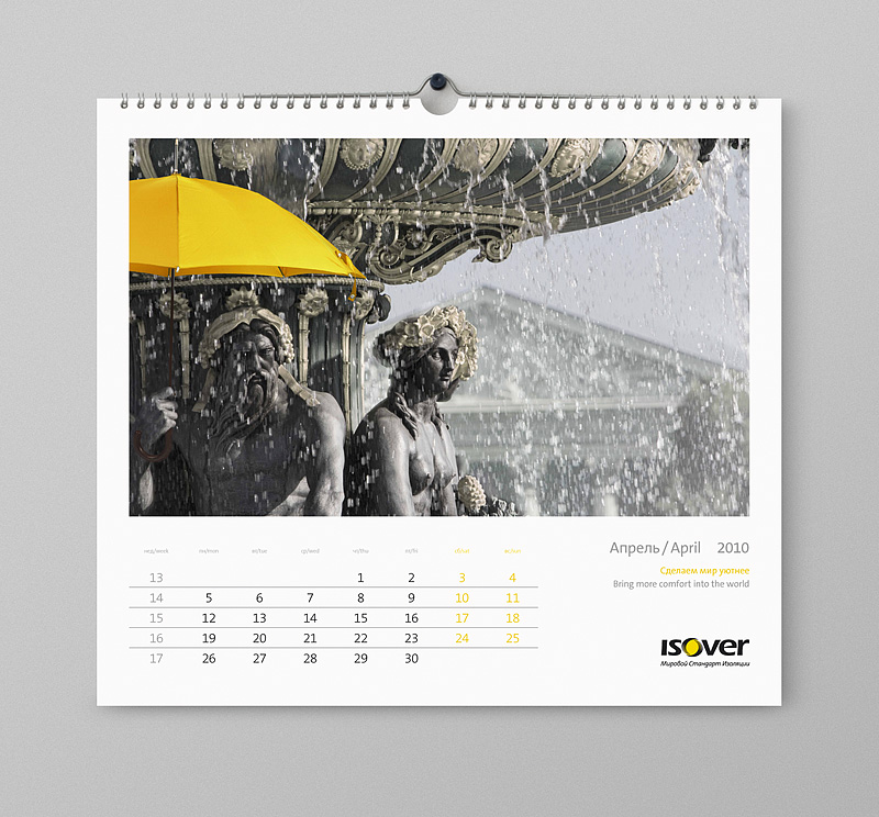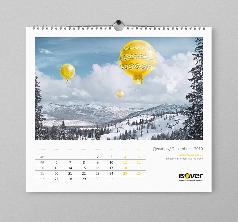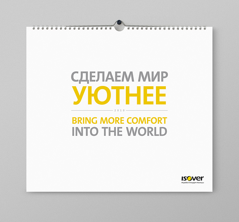 Календарь комфортаКомпания Isover, производитель материалов для строительной тепло- и звукоизоляции, подарила своим партнёрам и клиентам календари и сувениры, разработанные и выполненные агентством Great.Агентство Great произвело для клиента несколько видов календарей и оригинальных сувениров, в частности - подарок "Жидкий Isover" (такой же жёлтый, мягкий и тёплый, как и настоящая фирменная теплоизоляция) в комплекте с универсальным растворителем, гарантирующий владельцу долговременное состояние уюта и комфорта. Компания Isover всю свою историю старается сделать наш мир удобнее и приятнее для жизни, добавляя в него уюта, тепла и доброты. Нравственные принципы компании и призван продемонстрировать новый календарь. Креативные директора: Константин Платонов, Александр Ишуков Арт-директора: Олег Тверитин, Павел Дубов Эккаунт-менеджер: Ирина Чудинова |
