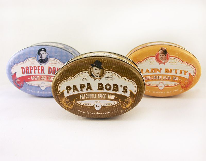 Винтажное мыло Lather Bee RichДизайн канадской студии El DesignoКомпания Lather Bee Rich руководствуется принципом аутентичности своей продукции - все ингредиенты натуральные, отсутствуют экспериментальные разработки, которые сейчас популярны у многих производителей мыла, и используются старые рецепты, не претерпевшие изменений с 1920 года. Для всех сортов мыла Lather Bee Rich - Blazing Betty, Corky's Cute Patoote, Dapper Dan, Dollface Darla, Lusty Lu-Lu и Papa Bob - были использованы образы реально существовавших людей, основавших компанию. Так как в начале 20 века широко было распространено олово, упаковки мыла сделаны из него, что добавляет атмосферы старины. При этом олово - идеальный материал в условиях современных тенденций использования экологичных материалов, так как его можно почти бесконечно перерабатывать, до тех пор, пока не произойдет естественный распад. Lather Bee Rich - продукт тщательной ручной работы в прекрасной упаковке, который буквально сосредотачивает в себе "роскошный декаданс старины". |