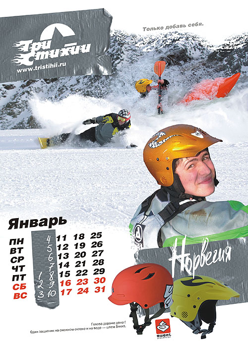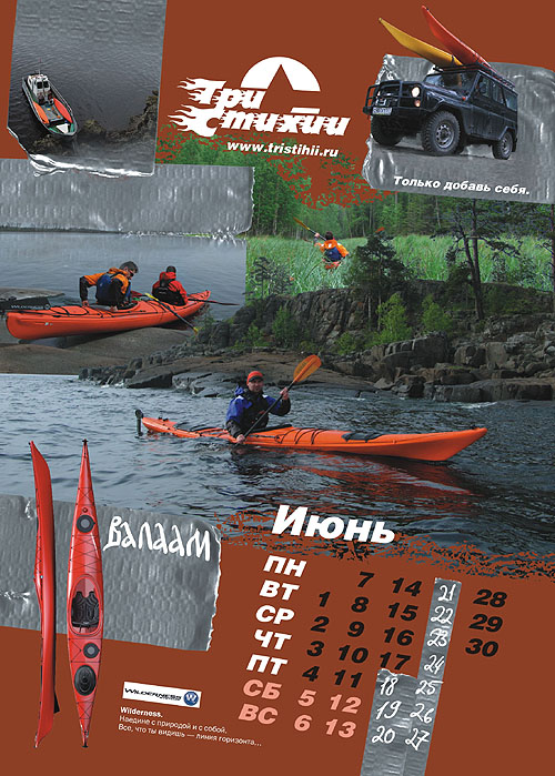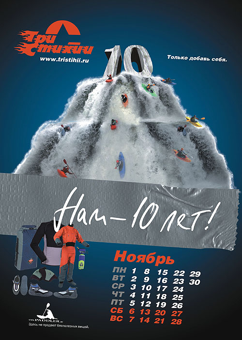 Календарь для каяк-клуба от ProDesignСергей Пронин (студия ProDesign) разработал календарь для каяк-клуба "Три стихии" и магазина водного снаряжения Paddler.ruКалендарь был вручен всем участникам на клубном собрании, посвященном празднованию нового года и обсуждению программы тренировок и путешествий сезона 2010. Каждый месяц иллюстрирует основное мероприятие, например, февраль - это родео-лагерь в Уганде, апрель - Корсика. Т.к. магазин Paddler.ru является основным (а для некоторых брендов и единственным) дистрибьютором товаров самых известных марок, таких как Sweet, Wave Sport, PeakUk, Palm, Dagger и пр., изначально планировалось создавать каждую полосу в фирменном стиле сопутствующего бренда, но в ходе обсуждений было решено остановиться на wavesport'овской "фишке", понятной каждому каякеру - "серебрянном" скотче. По ходу работы было придумано и реализовано много интересных коллажей, например, юбилейный ноябрьский торт или сентябрьская Чехия. Каждая полоса - это монтаж из множества фотографий "трехстихийцев". Интересных эффектов удалось добиться и в мелких деталях - например, когда линия горизонта фотографии сочетается с линией разрыва скотча. В общем, смотрите, читайте. Приходите к нам в клуб и попробуйте после этого сохранить свою работу :) www.tristihii.ru P.S. Истории, как делались коллажи (да и весь рабочий процесс), скоро можно будет увидеть в новых темах на состав-блоге Сергея Пронина. Будет интересно.