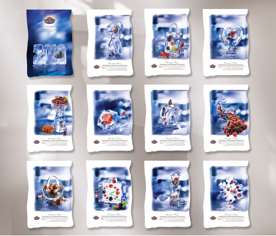 Soldis разработал для компании Вологодская Ягода креативный календарьАгентство Soldis Communications разработало для компании Вологодская Ягода креативный календарь на 2010 год. Основной задачей нового календаря стало желание рассказать о миссии компании, а также преимуществах продукции "Вологодская Ягода".Миссия компании - сохранить и донести до покупателя максимум природных свойств настоящих лесных грибов и ягод с помощью современной технологии шоковой заморозки - воплотилась в серии ледяных фигур. "Мы создали своеобразную галерею образов. На каждой странице лёд и ягоды рассказывают историю о качестве или богатом ассортименте продукции: будь-то сюжет о сундуке с лесными сокровищами или роге ягодного изобилия" - рассказывает арт-директор Soldis и автор креативной идеи Константин Дворников. Состав творческой группы Рабочая группа со стороны клиента: Руководитель отдела закупа и развития - Александр Калугин Исполнительный директор - Павел Петухов Рабочая группа со стороны агентства Soldis Communications: Арт-директор - Константин Дворников Иллюстраторы - Ирина Мурзина, Татьяна Росляк 3D визуализация - Олег Максимов Препресс - Светлана Родина Менеджер проекта - Марианна Кузнецова |