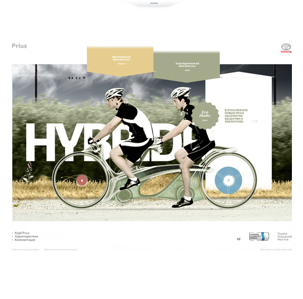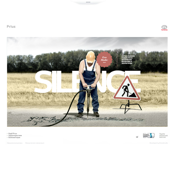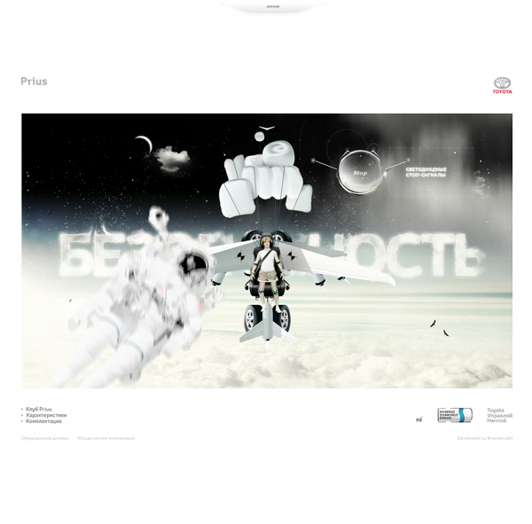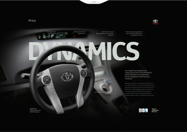 В ходе реализации проекта специально были отсняты видеоролики, а использование flash-технологий позволило создать возможность интерактивного взаимодействия пользователя с видео-контентом в каждом разделе сайта. Кроме того, помимо промо-сайта с его эмоциональной коммуникацией, был создан информационный портал, где не только собрана информация об автомобиле, но и постоянно обновляются новости, публикуются обзорные статьи, работает форум-клуб владельцев Toyota Prius, а также предусмотрена возможность проведения онлайн-консультаций и интервью. Оба ресурса - эмоциональный и информативный - объединены в единое целое, чтобы у каждого пользователя была возможность выбрать удобный формат взаимодействия с Toyota Prius.
