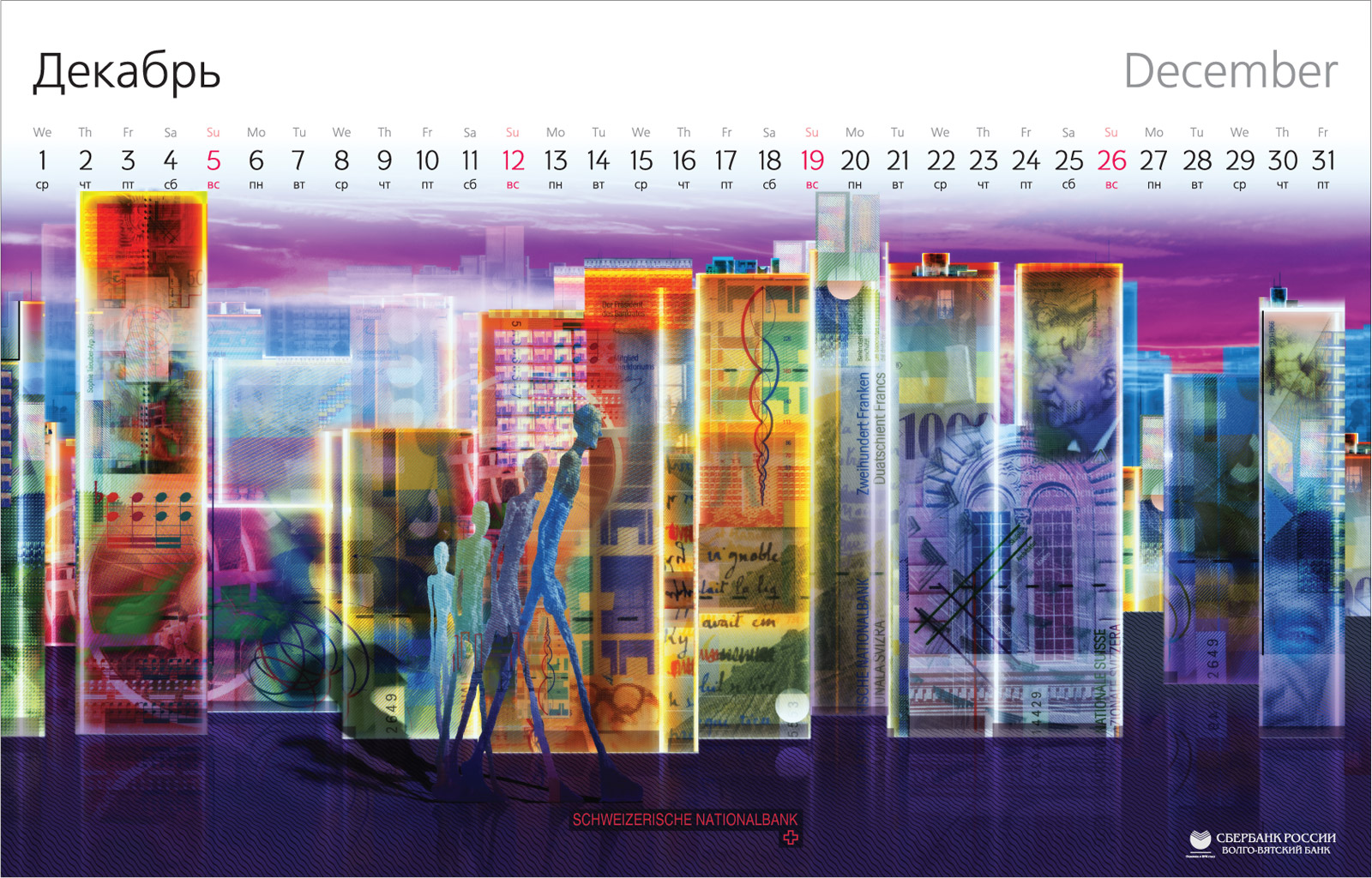 С намеком на деньгиРегиональный Сбербанк представил календарьНовый календарь Волго-Вятского Сбербанка (банк, объединяющий 7 регионов), сделанный креативным агентством fastway: ideas that rock!, является примером того, как с помощью избитых ассоциаций можно добиться интересного результата. Только ленивый не изображал на рекламной продукции банков деньги. Так же решили поступить и создатели этого календаря. Двенадцать валют, который Сбербанк принимает к обмену, как нельзя лучше вписались в двенадцать месяцев, из которых по счастливой случайности состоит 2010 год. Ведь каждый дизайнер хотел бы поработать над дизайном денежной купюры и желательно получть потом гонорар ими же. Идея каждого месяца - коллаж из элементов банкнот одной валюты, связанный композиционно, логически и сюжетно. Придумать календарь оказалось гораздо проще, чем совместить разные элементы. Как показал двухмесячный труд, больше всего повезло валютам, на которых изображены птицы, люди, плавстредства с водоемом и лошади. Путем смешивания этих элементов при условии наличия зданий и суши можно создать вполне реалистичный сюжет. Дизайнеры не могли отказать себе в удовольствии добавить в коллаж кое-что от себя. Январь. Датские кроны. Датское правительство давно хотело внести на одну из купюр льва, пьющего "Карлсберг". Но парламент последовательно не утверждал это решение. Мы оказались смелее. Февраль. Канадские доллары. Непосредственность иллюстраций позволила слепить из элементов этой валюты настоящий зимний праздник, на который даже йети заглянул. Март. Европейские евро. Твердость и ликвидность европейской валюты компенсируется ее скучными "скаждойстраныпомосту" сюжетами. Апрель. Рубли. Так могла бы выгдядеть купюра номиналом 6660 рублей (сумма всех российских банкнот). Инопланетяне ждут разрешения на посадку и проведение Марша неподвластных. Май. Английские фунты. Конечно, королева на первом месте. Но и Бэтмэн тоже следит за порядком в Британской Империи. Июнь. Китайские юани. И куда спрятались почти полтора миллиарда человек? Июль. Американские доллары. Всевидящее око следит за мировым порядком из Белого дома. Логотип "Макдоналдса" с фасада здания заказчик попросил убрать. Август. Чешские кроны. "Красивая женщина спасает отсутствие сюжета". Сентябрь. Норвежские кроны такие скучные, что сразу хочется проиграть их в карты. Октябрь. Шведские кроны. "Тихий вечер в Стокгольме". Нильс улетает с дикими гусями, подальше ото льва, собравшегося отобедать. Ноябрь. Гривны. "Киевская Русь". Декабрь. Швейцарские франки. Независимость швейцарцев победила все мировые валюты - более необычные деньги трудно придумать. В результате получился город сумасшедших. Задача перед создателями календаря стояла как всегда одна и та же - сделать так, чтоб календарь весь год привлекал к себе внимание. А что привлекает внимание больше денег? Состав творческой группы Идея, дизайн - fastway: ideas that rock! Координаторы проекта: Василий Губин, Илья Соловьев. Арт-директор Алексей Лаврентьев. Дизайнер Максим Тужакаев. Коллажи: Руслан Баранаускас, Максим Тужакаев, Алексей Лаврентьев. |