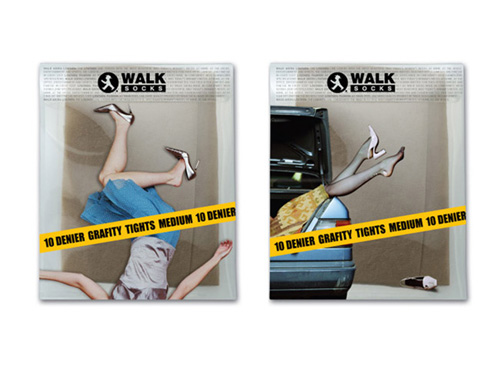 Чулки Walk Socks на месте преступления"Преступное" привлечение внимание дизайном Mouse GraphicsГреческая дизайнерская студия Mouse Graphics, работы которой неоднократно получали призы специализированных фестивалей, представила новую упаковку для женских чулок марки Walk Socks. Афинские креативщики отвесили поклон криминальному жанру, использовав в качестве иллюстрации на упаковке сцену с места преступления. Дизайн не только выделяющийся на фоне прочих, но и вызывающий неподдельный интерес у потребителя. Похожим методом в прошлом году воспользовалось агентство JWT Melbourne, создав рекламу коллекции мужских костюмов Sarti Tailors - в центре кампании были мертвые бизнесмены, которые все равно хорошо выглядели в своих костюмах. В мае 2009 Mouse Graphics также представило упаковку носков Walk Socks, а также корпоративную брошюру для этой компании. |