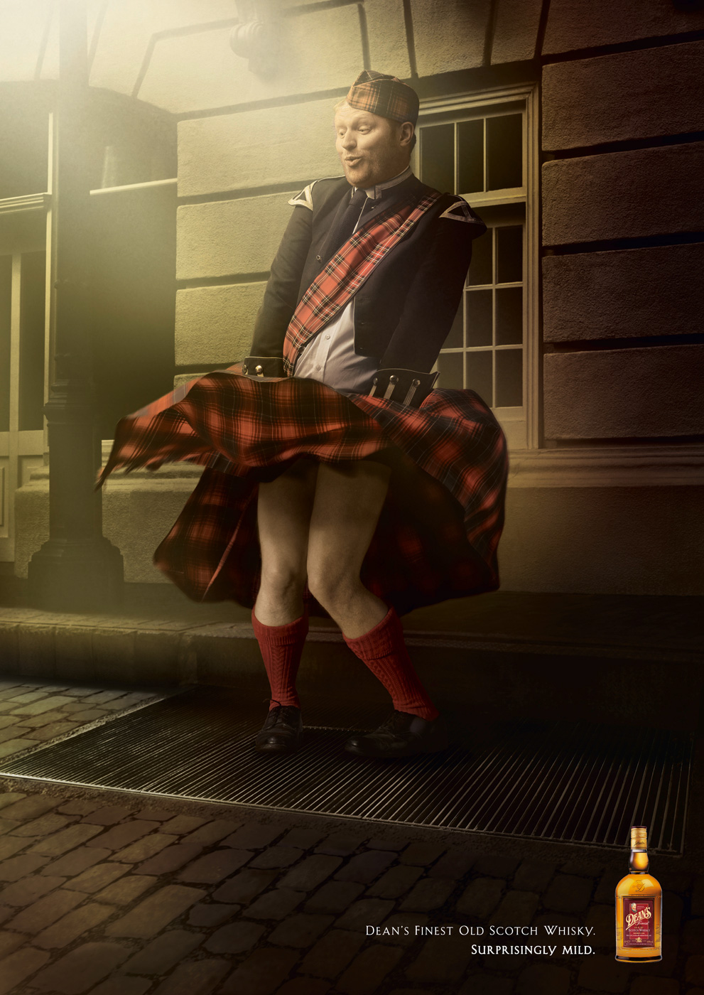 Как Мэрилин МонроРеклама шотландского виски Dean'sАгентство Scholz & Friends NRW из Дюссельдорфа спародировало известнейшую фотографию с Мэрилин Монро, когда потоком воздуха у нее развевается юбка. Однако вместо актрисы принт изображает шотландца в традиционном одеянии. Реклама подчеркивает, что Dean's Whisky обладает мягким вкусом, который подходит не только для любителей крепкой выпивки. Юмор и некоторая женственность данного принта призваны вызвать интерес у новых целевых групп и повысить информированность о бренде как можно сильнее за пределами групп лояльных потребителей. Состав творческой группы Agency: Scholz & Friends NRW, Managing Director : Niels Alzen Creative Director: Alexander Hansen Art Director: Mario Zaradic Copywriter: Annika Hullebrand Graphics: Sebastian Jahrmarkt Photographer: Johannes Pottgens Managing Director: Raphael Brinkert Management Supervisor: Bastian Kuhl Junior Account Manager: Melanie Stein Published: January 2010 |