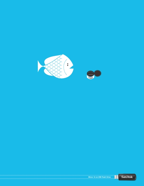 Sandisk вмещает невмещаемоеЯркая реклама компактных флешекОчень симпатичная рекламная кампания от агентства Nolin BBDO из Канады для мирового лидера в производстве флеш-карт и внешних usb-дисков Sandisk. Серия принтов посвящена новой 16-гигабайтной флешке XPC, отличающейся крайне малыми размерами. Реклама образно, максимально доходчиво, и, что немаловажно, очень весело изображает, что в этот маленький девайс помещается то, что во много раз больше его самого. Состав творческой группы Advertising Agency: Nolin BBDO, Canada Creative Director: Cher Campbell Art Director: Jeffrey Limon |