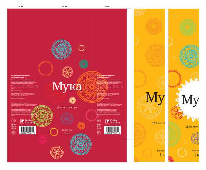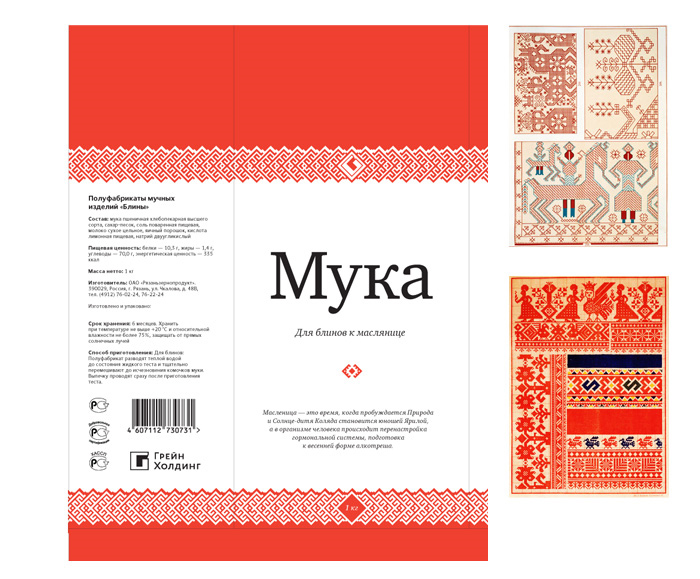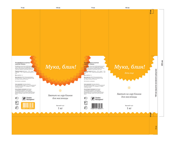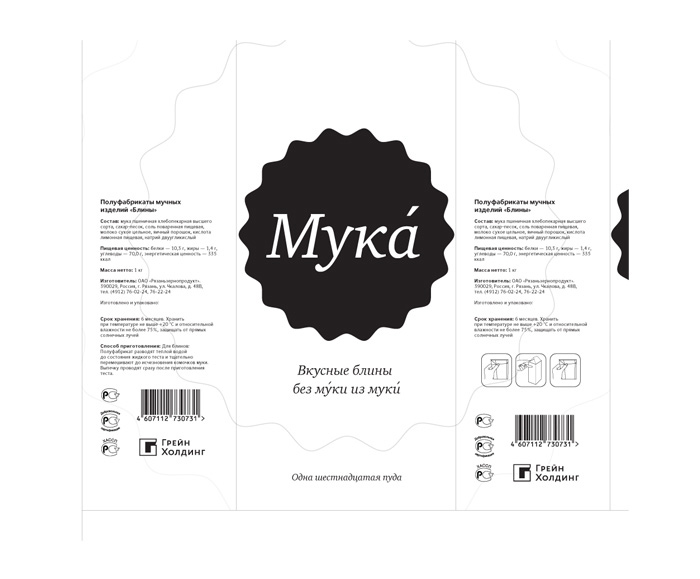 Состав творческой группы: арт-директор Артемий Лебедев дизайнеры Людвиг Быстроновский, Наталья Анциферова верстальщики Ждан Филиппов, Анна Головина редактор Катерина Андреева менеджер Алексей Лури Еще одним проектом студии стала разработка дизайна упаковки блинных полуфабрикатов "Грейн Холдинга". Состав творческой группы арт-директор Артемий Лебедев дизайнер Владимир Зотов верстальщик Искандер Мухамадеев редактор Катерина Андреева менеджеры Алексей Лури, Марина Толстокорова Процесс: