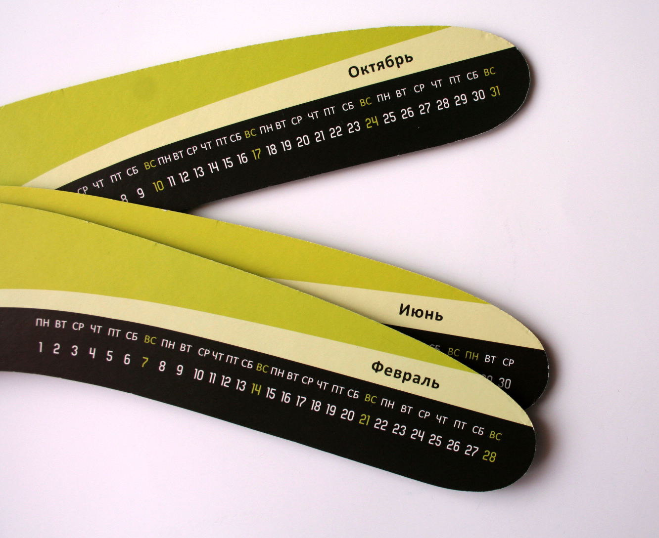 Календарь-бумеранг как метафора скорости и движенияКалендарь-бумеранг придумали и реализовали в агентстве SSN Brand Development Team для украинской раллийной Jet RacingКонечно, охотиться с таким бумерангом - дело неблагодарное. Но в качестве сувенира, памятного подарка или экспоната для дружеской фотосессии - подойдёт отлично. Да, по нему ещё и даты узнавать можно. |