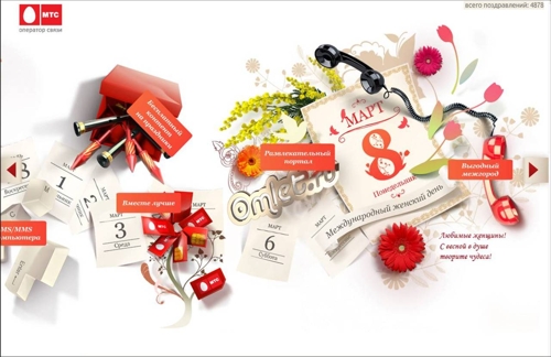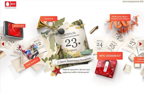 МТС посоветует подаркиВ Рунете запустился новый промо-сайт компании МТС - "Праздники", приуроченный к череде февральских и мартовских праздников.Специалисты отдела маркетинговых коммуникаций предложили создать сайт, объединяющий все возможные подарки от МТС. На сайте абонент не только отправить свое поздравление для всех посетителей сайта, но и выбрать подарок для своих друзей - отправить им поздравительное MMS/SMS, увидеть собранные в одном месте предложения по брендированным телефонам и модемам МТС, узнать о новинках розничной сети. "Изюминкой" портала стало использование популярных AI (artificial intelligence) персонажей - инфов, которых абонент может отправить своим друзьям. При получении персонаж сможет не только поздравить, но и "поговорить" с адресатом. Технология инфов подразумевает обучение в ходе общения, поэтому с каждой новой отправкой персонаж будет обладать все большим и большим словарным запасом. Компания МТС поздравляет читателей портала с наступающими праздниками и желает отличного настроения и успехов! Состав творческой группы Разработка промо-сайта - BBDO Moscow: Арт-директор - Артем Ефимцев Дизайнеры - Руслан Латыпов, Александр Любавин, Анна Капранова Флеш-аниматор - Антон Тен Флеш-программист - Руслан Михалев Программист - Илья Костоваров Копирайтер - Екатерина Маркова Руководители проекта - Светлана Горякина, Константин Палади Управляющий директор BBDO Interactive - Александр Иванов Разработка "говорящих" открыток - ЗАО "Наносемантика" Команда МТС: Директор департамента маркетинговых коммуникаций - Евгения Чурбанова Начальник отдела коммуникаций розничного рынка - Наталия Глаголева Директор по проектам - Заболоцкая Антонина Руководитель проекта - Перфильева Анна |