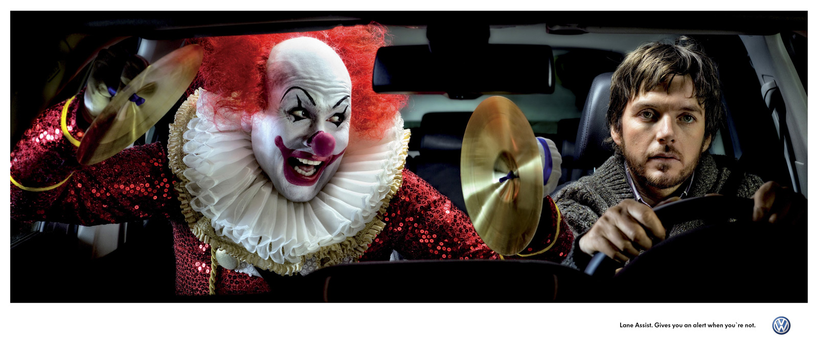 Volkswagen дает сигналы водителям с помощью клоуновРеклама системы Lane Assist в автомобилях маркиНовая кампания для Volkswagen от норвежского агентства Try, которое работает с брендом вот уже два года. Каждая кампания норвежских креаторов для Volkswagen отличается простотой и метафоричностью, так было в рекламе Volkswagen BlueMotion, Volkswagen Golf, и VW Scirosso. Новая кампания посвящена системе контроля движения Lane Assist, которая оповещает водителя громким сигналом, если тот вдруг съехал со своей полосы, таким образом, предотвращая аварию. О том, насколько действенным и громким является этот сигнал, можно судить по клоуну на принте, которой вот-вот приведет в чувство засыпающего водителя. Состав творческой группы Advertising Agency: Try, |