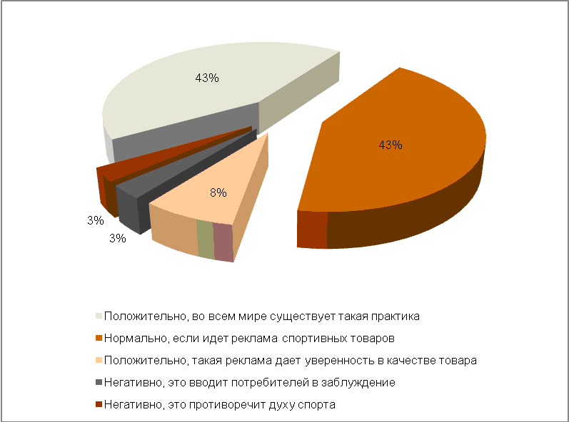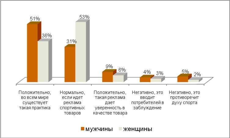 "Ромир" выяснил отношение россиян к участию спортсменов в рекламеБолее половины соотечественников "за"Незадолго до начала зимних Олимпийских Игр в Ванкувере исследовательский холдинг "Ромир" поинтересовался у россиян их отношением к участию спортсменов в рекламе тех или иных товаров. Согласно полученным данным, более половины наших соотечественников (51%) к подобным инициативам относится положительно. При этом 43% опрошенных поддерживают деятельность спортсменов по продвижению товаров на рынок, поскольку "такая практика существует во всем мире". 8% респондентов с одобрением отзываются о таких проектах, так как "реклама с участием спортсменов дает уверенность в качестве товара". Еще 43% россиян относятся к рекламной активности спортсменов нейтрально, если речь идет о рекламе спортивных товаров. Негативно настроены в отношении участия спортсменов в рекламе только 6% наших сограждан. По мнению 3% опрошенных, "это вводит потребителей в заблуждение", еще 3% респондентов заявляют, что "это противоречит духу спорта". Сравнение результатов опроса среди мужской и женской аудиторий демонстрирует большую категоричность мужчин в оценке непрофильной деятельности спортсменов. С одной стороны, большее число представителей сильного пола склонны оправдывать рекламные проекты с участием звезд спорта, количество позитивно отзывающихся почти в полтора раза выше, чем среди представительниц прекрасной половины человечества (60% против 42%). С другой стороны, и уровень противников такого рода занятия - почти в два раза больше (9% против 5%). Женщины проявляют в этом вопросе большую сдержанность: каждая вторая из них (53%) нормально относится к рекламе со спортсменами, среди мужчин этот показатель равняется 31%. Влияние возраста целевой аудитории на отношение к участию спортсменов в рекламе несущественно. Только среди представителей старшего поколения число позитивно настроенных респондентов сокращается в пользу увеличения количества людей, нейтрально оценивающих подобные проекты.