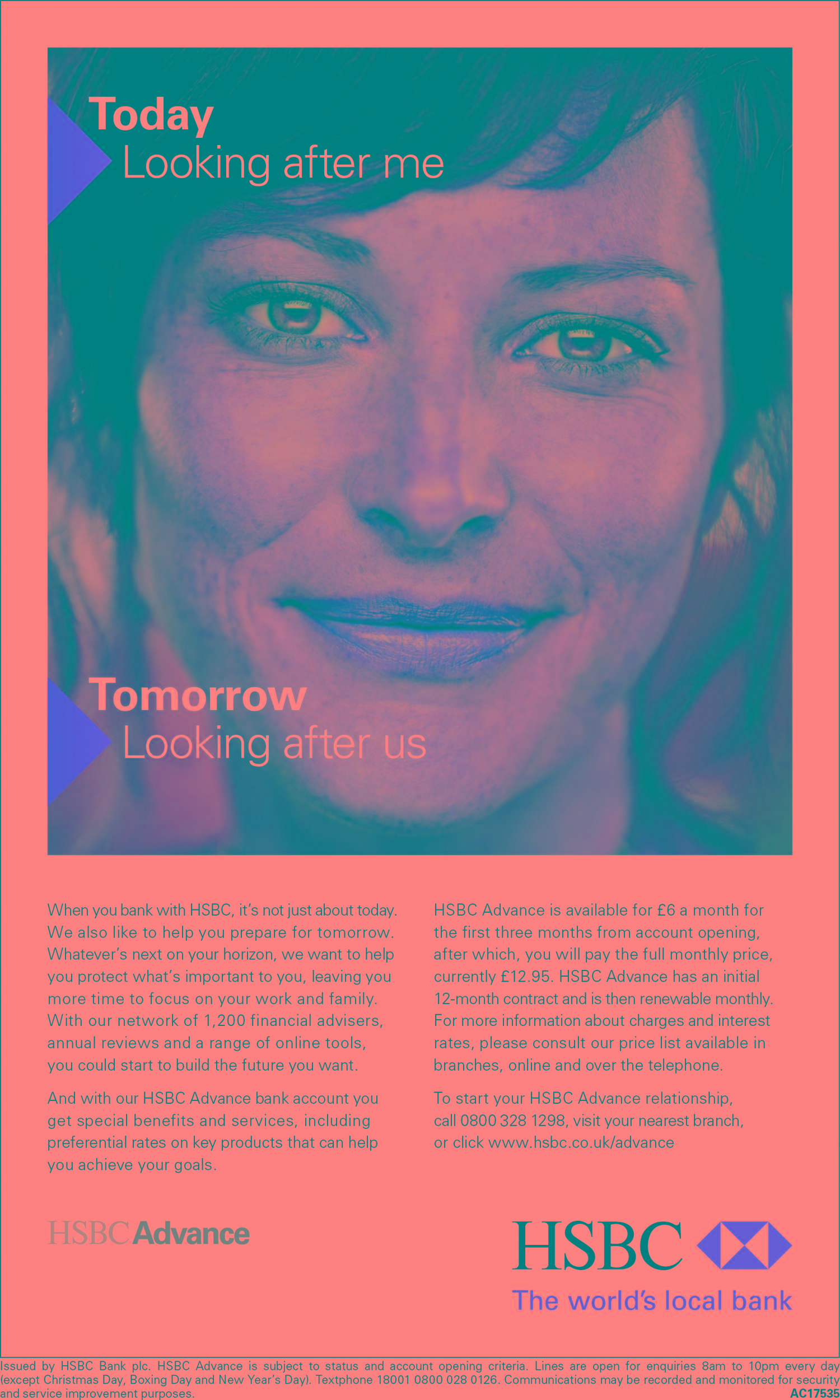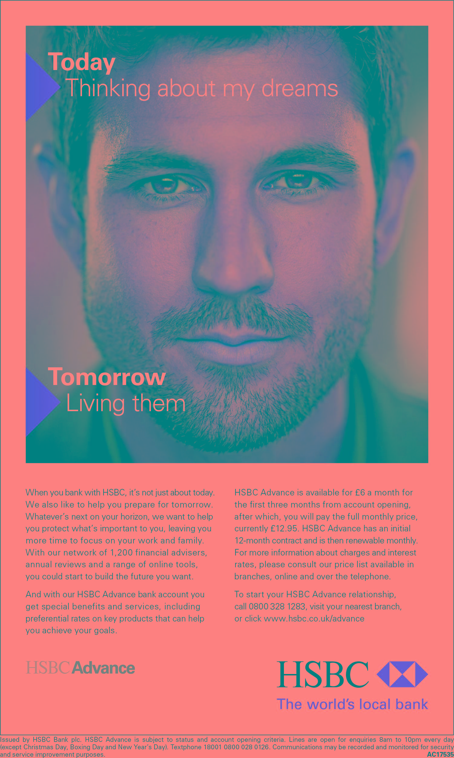 FITCH помогло банку HSBC разработать и запустить новое финансовое предложение HSBC AdvanceБрендинговое агентство FITCH, входящее в состав рабочей группы WPP по проекту для банка HSBC, приняло участие в разработке нового финансового предложения HSBC Advance.Финансовое предложение HSBC Advance разработано в рамках глобальной стратегии HSBC по увеличению доли рынка в растущем массовом сегменте с уровнем дохода выше среднего (mass affluent). Предложение HSBC Advance рассчитано на широкую целевую аудиторию - около 154 миллионов клиентов во всем мире. Оно призвано дополнить уже существующее предложение HSBC Premier, ориентированное на более высокодоходную аудиторию, которой необходим наивысший уровень международного обслуживания. Запуск HSBC Advance состоится в 30 странах. Первые запуски состоятся в феврале 2010 года в Гонконге и Великобритании, а в марте 2010 оно будет представлено на рынке Бразилии. HSBC Advance призвано помочь клиентам банка управлять своими сбережениями и планировать их будущее развитие, иметь прямой контроль за своими средствами и постепенно улучшать качество своей жизни. Ключевые преимущества программы HSBC Advance - банковские услуги по запросу, а также прямые банковские и финансовые услуги, направленные на создание, защиту и накопление финансовых сбережений. Запуск HSBC Advance - часть глобального проекта HSBC по реорганизации архитектуры коммуникаций бренда. Она направлена на продвижение специальных предложений, разработанных с учетом потребностей и ожиданий целевых аудиторий. Каждое из пяти предложений, предлагаемых в рамках проекта, включает в себя определенный набор финансовых услуг, которые обеспечивают максимально эффективное взаимодействие клиентов с банком в сочетании с традиционными ценностями бренда HSBC. В рамках данного проекта FITCH выполнило следующий спектр работ по стратегии и дизайну: разработка архитектуры бренда, иерархии коммуникаций, разработка визуальной корпоративной символики, руководства по использованию бренда, визуализацию онлайн и розничных коммуникаций, а также дизайн прямых носителей бренда - банковских карт, информационных материалов и брошюр, канцелярских товаров. Рабочей группой было проведено масштабное исследование по изучению целевой аудитории нового финансового предложения. Его результаты показали, что целевая аудитория HSBC Advance - клиенты банка, чьи потребности и ожидания выходят за рамки стандартного набора финансовых услуг. По итогам исследования компании FITCH, JWT и RMG Connect составили детальный потрет потребителя и определили его отношение к ключевым ценностям бренда HSBC. Потенциальные клиенты HSBC Advance - это преимущественно молодые и амбициозные люди, хорошо разбирающиеся в современных технологиях и инновациях, нацеленные на поиск новых интересных возможностей. Вместе с тем, им необходима помощь в выборе оптимального направления развития. Эти данные стали основой для самого названия HSBC Advance и его слогана "Who could you be tomorrow?". Логотип HSBC Advance помогает безошибочно идентифицировать само предложение, равно как и его принадлежность к бренду HSBC, благодаря использованию графического символа - стрелки. Визуальный язык в полной мере выражает особенность данного финансового предложения, а именно ориентацию на индивидуального потребителя. Это также отражает и разработанный стиль фотоиллюстраций, который дополнительно подчеркивает гло