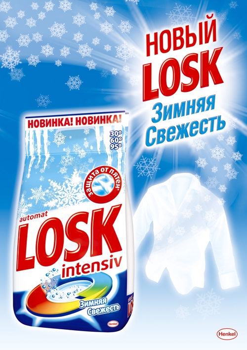 LOSK расширяет линейкуКомпания "Хенкель" объявила о запуске нового стирального порошка LOSK Intensiv "Зимняя Свежесть". Согласно исследованиям свежие ароматы порошков высоко востребованы потребителями, однако многие из существующих ароматов не соответствуют их ожиданиям.LOSK Intensiv "Зимняя Свежесть" выпускается в яркой, привлекательной упаковке с уникальным снежным фоном, который создает настроение морозной, снежной зимы и усиливает ощущение свежести. Запуск новинки будет сопровождаться активной рекламной поддержкой на основных телевизионных каналах, а также в точках продаж. |