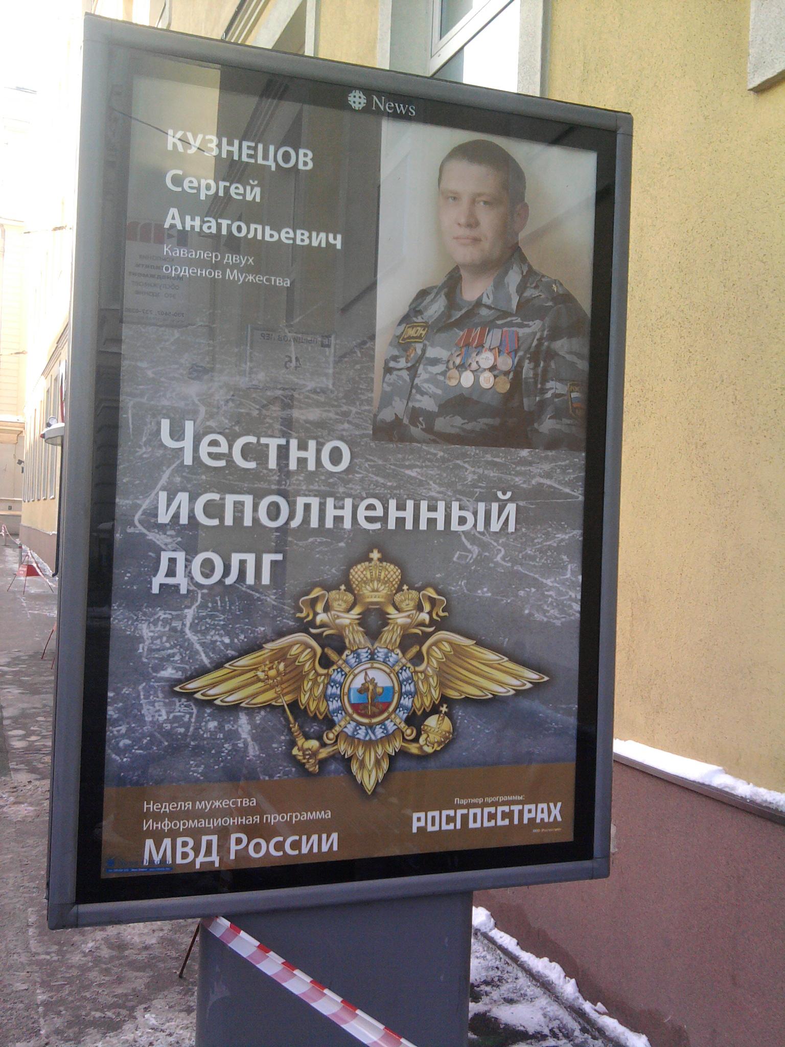 Росгосстрах поместил героев на улицы МосквыСоциальная акция проведена вместе с МВДВ феврале Министерство внутренних дел совместно с Росгосстрахом провели акцию "Неделю мужества". В ее рамках на улицах Москвы появились сити-форматы с изображением мужественных людей - сотрудников МВД, удостоенных высоких наград, например, Кавалера двух орденов Мужества Сергея Анатольевича Кузнецова. Идею акции предложило МВД, а Росгорстрах приняли в ней имиджевое участие. Как рассказал Sostav.ru Геннадий Дикалов, директор по маркетингу, вице-президент Росгосстрах, компания являлась страховщиком МВД и Министерства обороны в 2009 году: "Поэтому для нас предложение о таком роде партнерства со стороны МВД было интересным. Тем более, что для компании это больше социальная акция, нежели имиджевая". Татьяна Полякова, Sostav.ru Фото Sostav.ru |