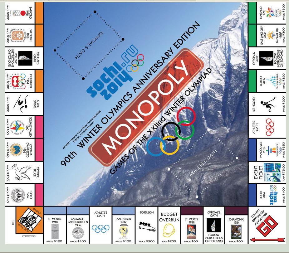 "Монополию" - Сочи 2014 придумали в АвстралииГрядущие зимние олимпийские игры 2014 года в Сочи не оставляют равнодушными практически никого.Так, дизайнер из Австралии, известный на сайте www.devianart.com под ником LordDavid04 представил на ресурсе новую "Монополию", посвященную им. В набор вместо классических игровых фишек вошли коньки, хоккейная клюшка, лыжная палка, кёрлинговый камень и другие неотъемлемые атрибуты зимних олимпийских видов спорта. Расплачиваться за игровые карточки в новой "Монополии" предполагается "олимпийскими долларами". Татьяна Полякова, Sostav.ru |