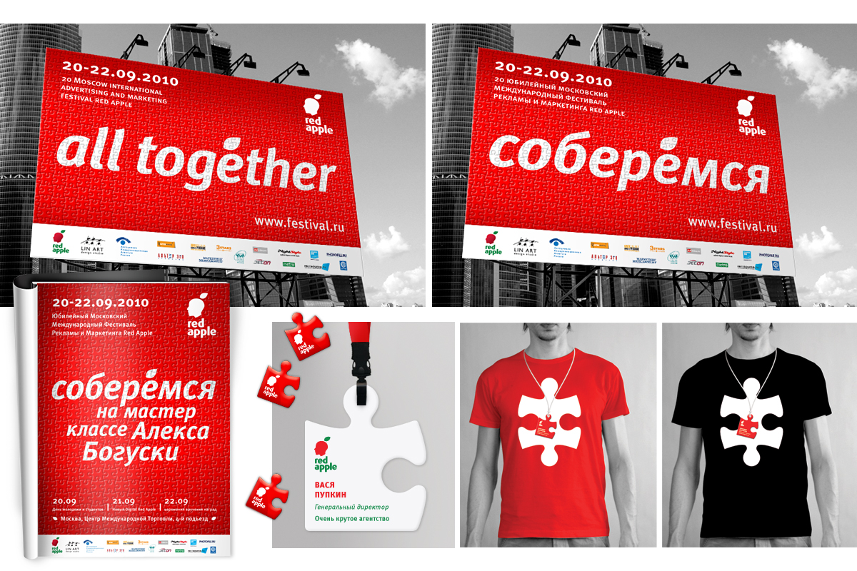 Red Apple представил юбилейный фирменный стильФирменный стиль для юбилейного 20 Московского Международного Фестиваля рекламы и маркетинга Red Apple разработала дизайн студия ЛИН-АРТ (Москва)"В этом году мы объявили конкурс на разработку фирменного стиля для 20-го фестиваля, к участию в котором пригласили те компании, в разные годы уже что-то создававшие для фестиваля, - комментирует генеральный директор Московского Международного Фестиваля рекламы и маркетинга Red Apple Елена Нарышкина. - В конкурсе участвовали компании Direct Design, Movie, Реал Про, Артикул Медиа, Има Дизайн и студия ЛИН-АРТ. Я благодарю всех участников конкурса и поздравляю победителя! По моему мнению, этот стиль наиболее точно, просто и наглядно иллюстрирует цель организаторов фестиваля - собрать в одном месте и в одно время самых замечательных людей, работающих в рекламе и маркетинге, начиная с первых конкурсов, которые назывались Съездами Фонда поддержки рекламопроизводителей. В 2010 году мы будем праздновать юбилей - 20-й фестиваль, и очень хотели бы видеть всех, кто создавал рекламную отрасль в России, Белоруссии, Украине, Казахстане, Узбекистане и в других странах все эти годы, словом собрать друзей и коллег и вспомнить, как все начиналось, как постепенно складывались из маленьких пазлов картинки современной российской рекламы". Генеральный директор дизайн студии ЛИН-АРТ Александр Дворянкин комментирует: "Работу над созданием фирменного стиля 20 Московского Международного Фестиваля Рекламы и Маркетинга Red Apple мы начали с поиска подходящей метафоры, которая помогла бы оригинально решить проблему объективного отражения дел на маркетингово-рекламном пространстве и сбору всех ведущих специалистов в области рекламы, маркетинга, дизайна, PR и брэндинга на фестивале. И такая метафора нашлась. "Пазл" как нельзя лучше отражает суть концепции и иллюстрирует связь между частью и целым. Каждая деталь мозаики - это участник рынка рекламы и маркетинга. И от того, соберутся ли в итоге все "детали" вместе, зависит насколько будет объективной сложившаяся картина Фестиваля". Образ пазла дизайнеры ЛИН-АРТ поддержали ёмким и лаконичным слоганом "Соберемся!", который звучит, как призыв к действию. Благодаря стараниям агентства "Jeton" обновился сайт 20 Московского международного Фестиваля рекламы и маркетинга - www.festival.ru. И уже с середины апреля можно будет зарегистрировать свои работы. Генеральный директор Агентства "Jeton" Юрий Новосад комментирует: "Мы старались сделать проект, который в дальнейшем будет активно развиваться. Новый сайт построен на CMS Netcat, на наш взгляд одной из лучших систем управления сайтами в Рунете. При этом, предыдущие версии сайта за прошлые годы были использованы в качестве прототипа. Наша команда постаралась взять лучшие решения из прошлых разработок и привнести свои. Мы предложили и реализовали наиболее современные и удачные решения при создании этого сайта, что позволит в будущем развивать и гибко настраивать функционал, а так же легко изменять внешний вид сайта в зависимости от новых дизайнерских решений". Состав творческой группы Дизайн студия ЛИН-АРТ Творческая команда: Концепция фестиваля, фирменный стиль Автор идеи и креативный директор - Александр Дворянкин Арт-директор проекта - Вероника Левицкая Дизайнеры - Татьяна Котягина, Люба Фёдорова 3D моделинг - Анатоли